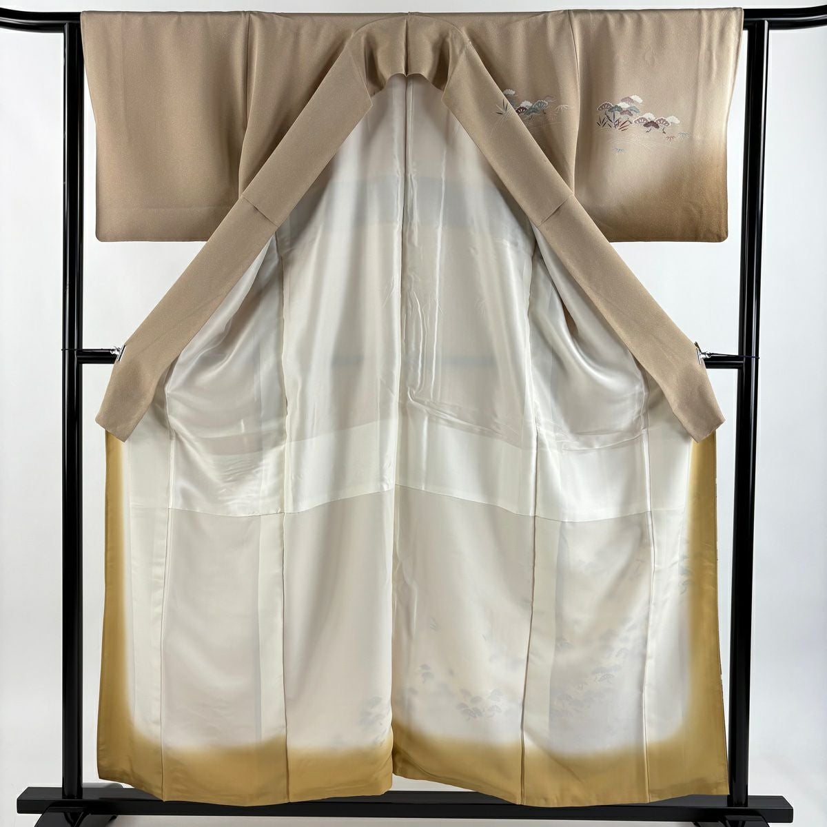 【在庫一掃】 訪問着 身丈154cm 裄丈62.5cm S 袷 川村久太郎 落款あり 樹木 幾何学 ぼかし 灰茶 正絹 名品