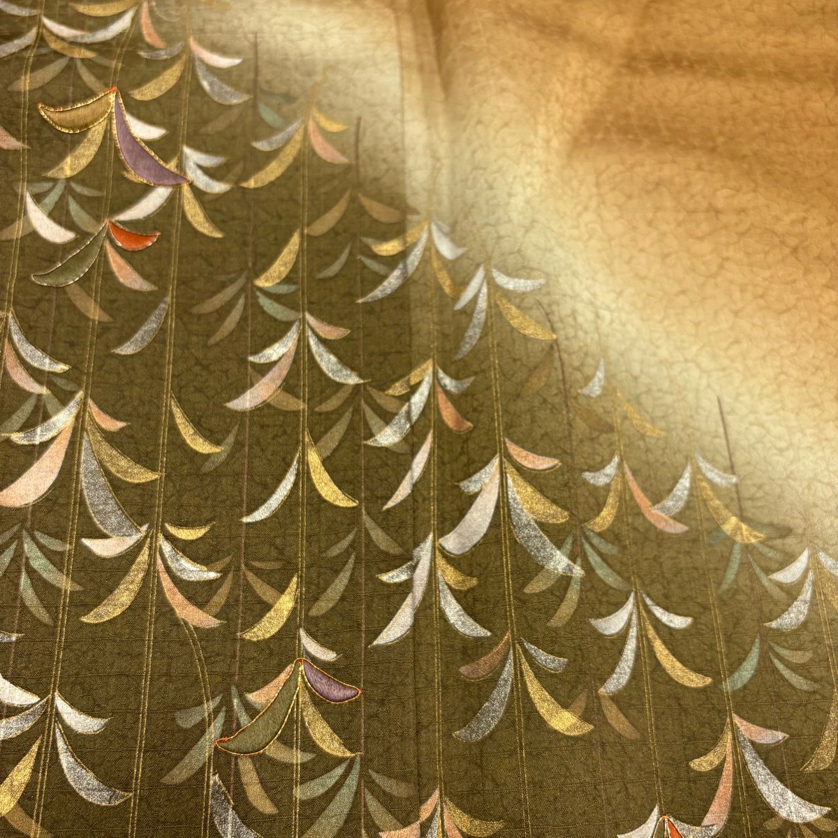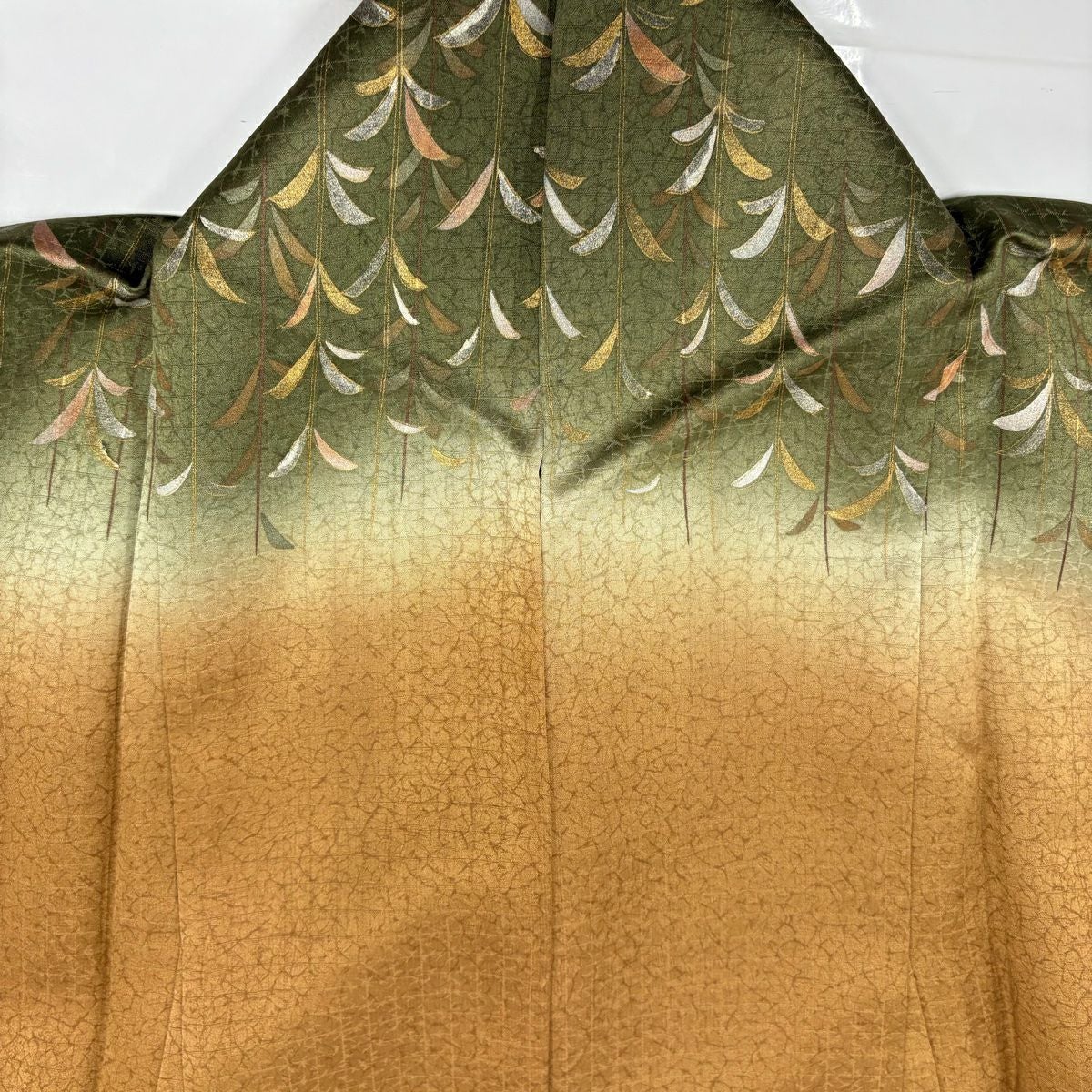 他の画像を見る 【最終値引き】 70%OFF 付下げ 身丈163.5cm 裄丈64cm M 袷 花車 地紋 刺繍 染め分け 抹茶色 正絹 秀品 K70 当店通常価格 ¥ 6,800 ¥ 1,980 税込