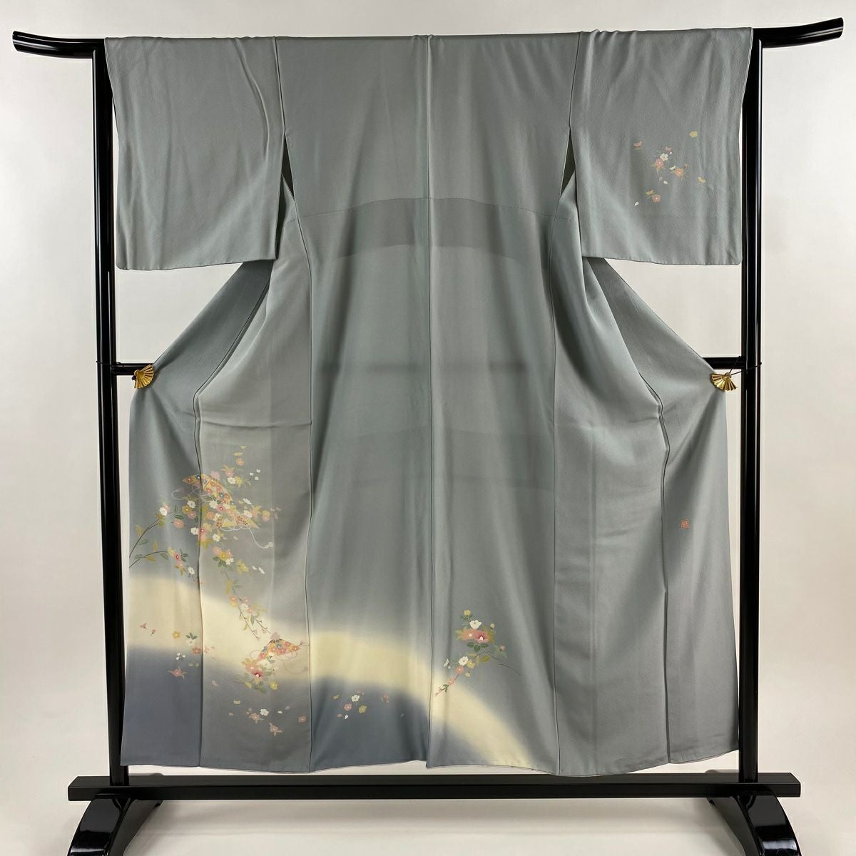 他の画像を見る 【最終値引き】 77%OFF 訪問着 身丈157.5cm 裄丈64cm M 袷 草花 流水 金彩 染め分け 青灰色 正絹 秀品 K70 当店通常価格 ¥ 8,800 ¥ 1,980 税込
