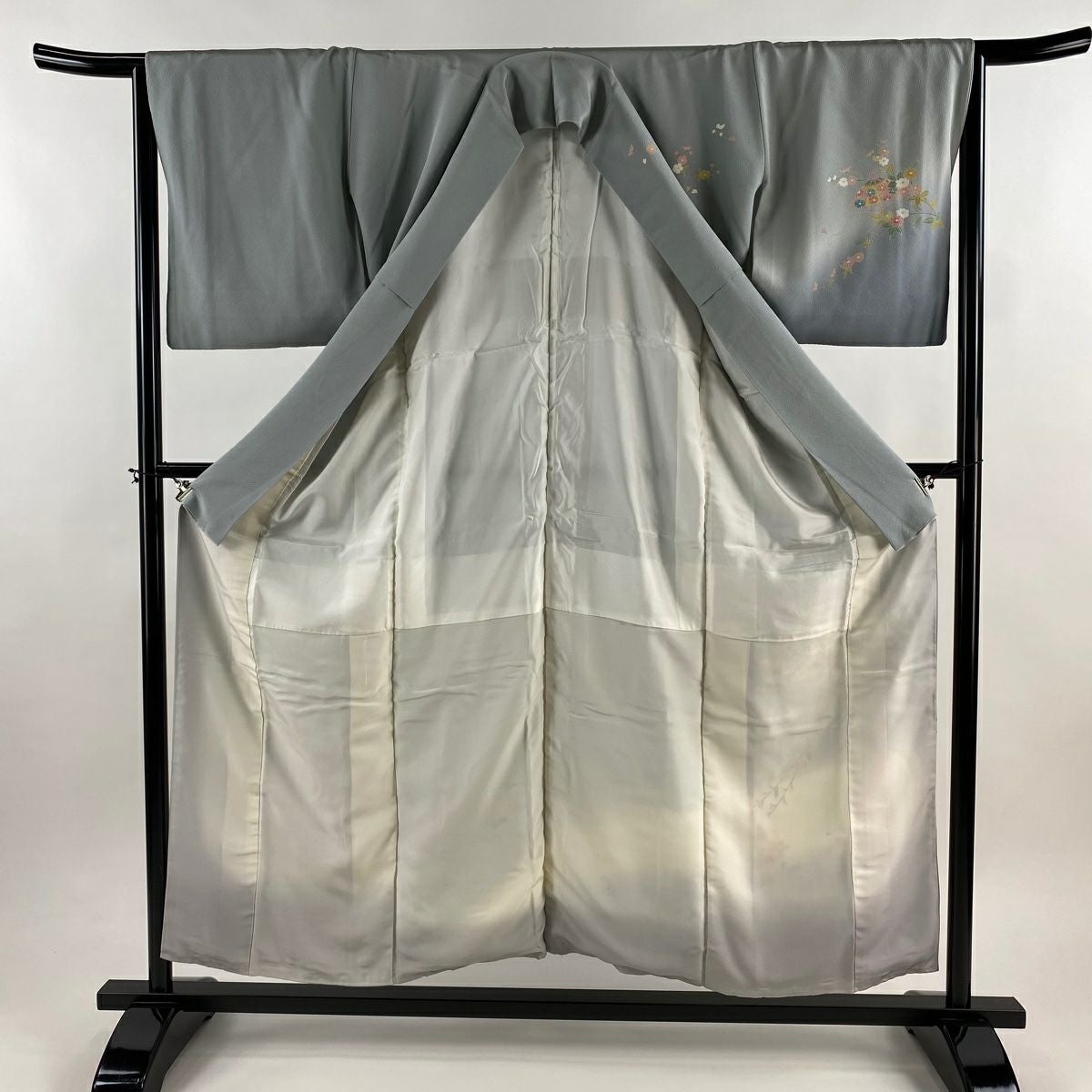 他の画像を見る 【最終値引き】 77%OFF 訪問着 身丈164.5cm 裄丈64cm M 袷 落款あり 草花 金彩 ぼかし 灰緑 正絹 秀品 K70 当店通常価格 ¥ 8,800 ¥ 1,980 税込