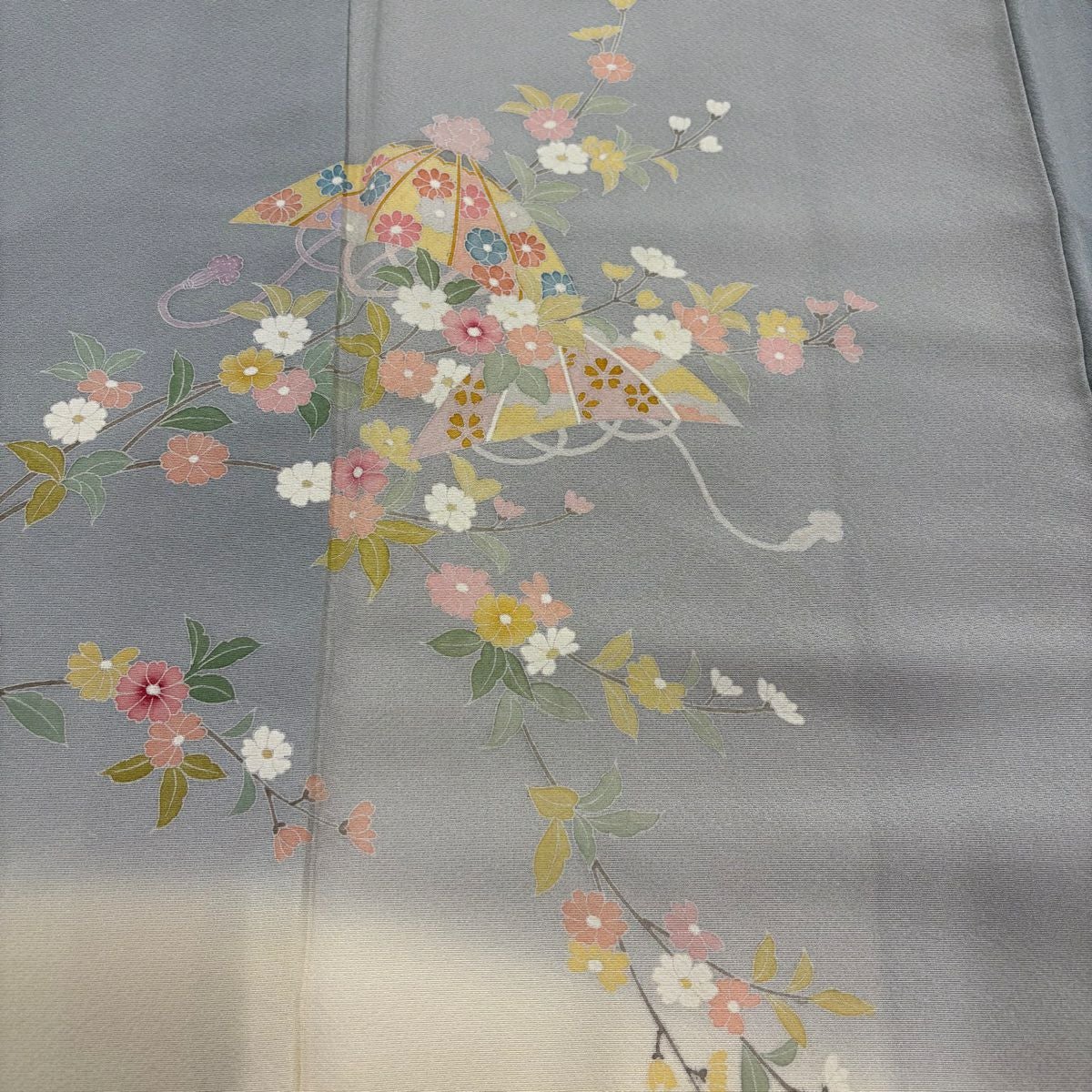 他の画像を見る 【最終値引き】 70%OFF 付下げ 身丈155.5cm 裄丈65cm M 袷 落款あり 花笠 草花 ぼかし 青灰色 正絹 秀品 K70 当店通常価格 ¥ 6,800 ¥ 1,980 税込