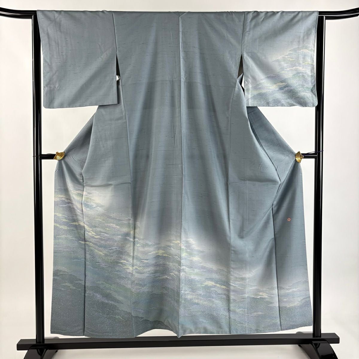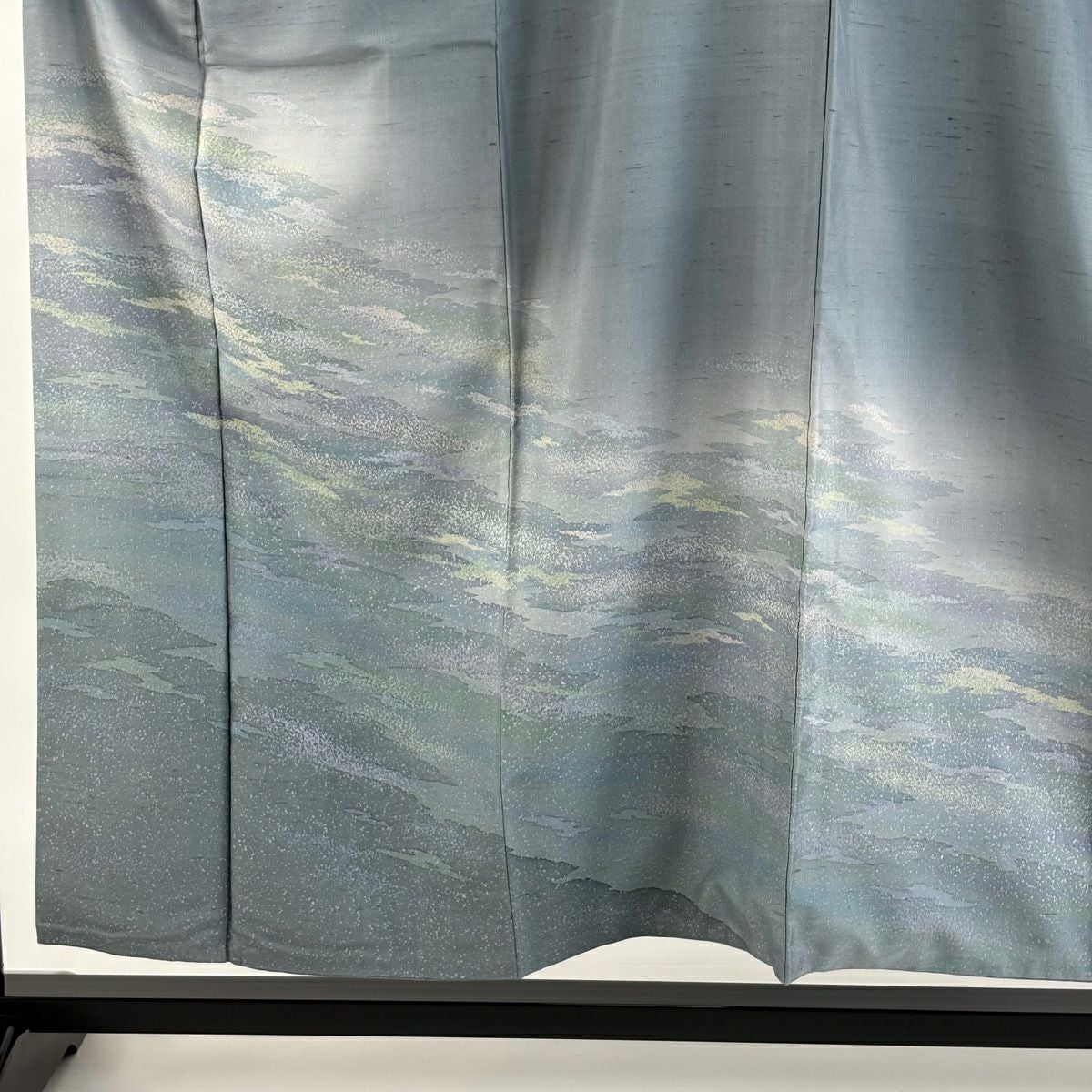 他の画像を見る 【最終値引き】 70%OFF 付下げ 身丈155cm 裄丈63cm S 袷 牛首紬地 落款あり 霞 ぼかし 青灰色 正絹 逸品 K70 当店通常価格 ¥ 44,800 ¥ 13,440 税込