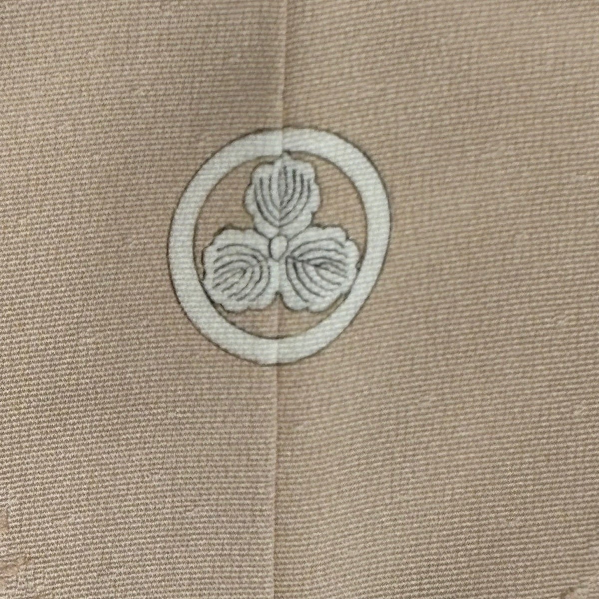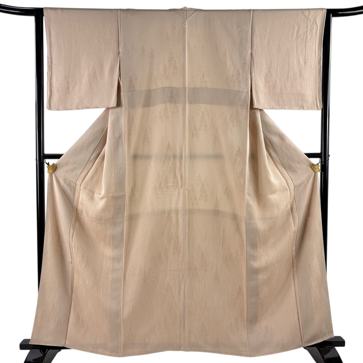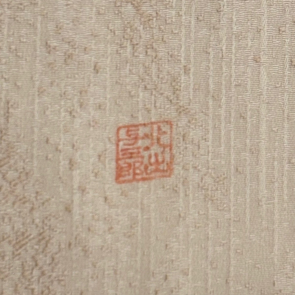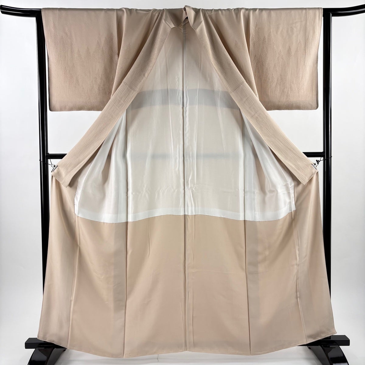 付下げ 身丈166.5cm 裄丈67cm M 袷 紬地 菱屋六ヱ門 落款あり 文字文 幾何学 ベージュ 正絹 名品 一つ紋