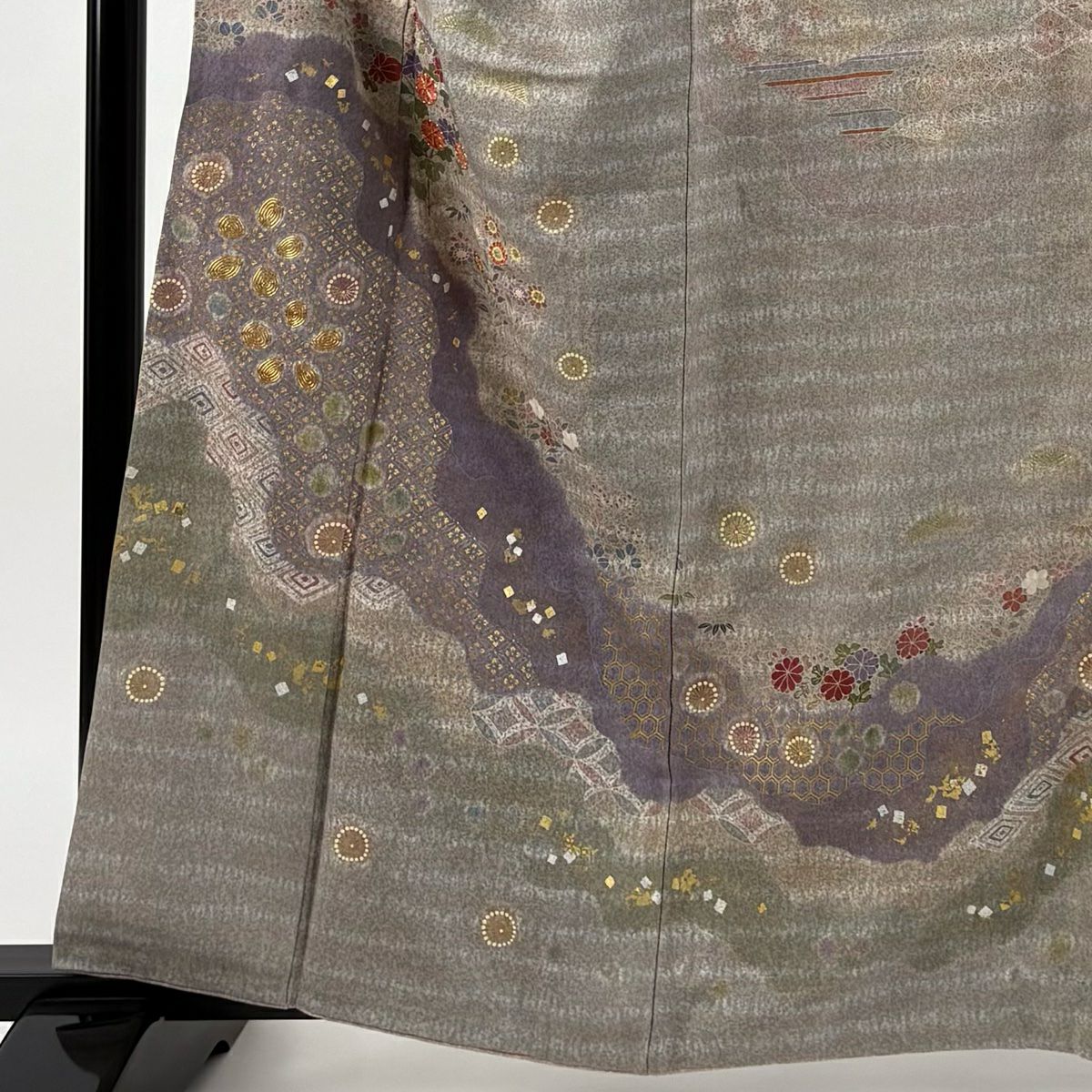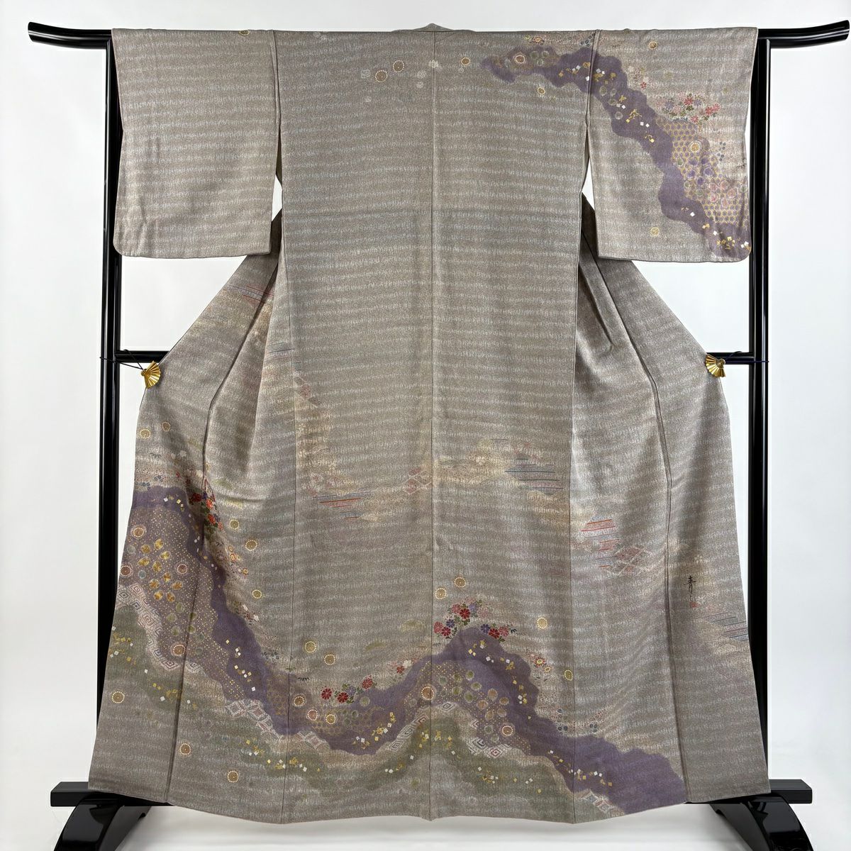 他の画像を見る 20%OFF 付下げ 身丈163.5cm 裄丈67cm M 袷 藤林徳扇 落款あり 花鳥 ヱ霞 金銀彩 銀通し 灰色 正絹 逸品 K30 当店通常価格 ¥ 30,800 ¥ 24,640 税込