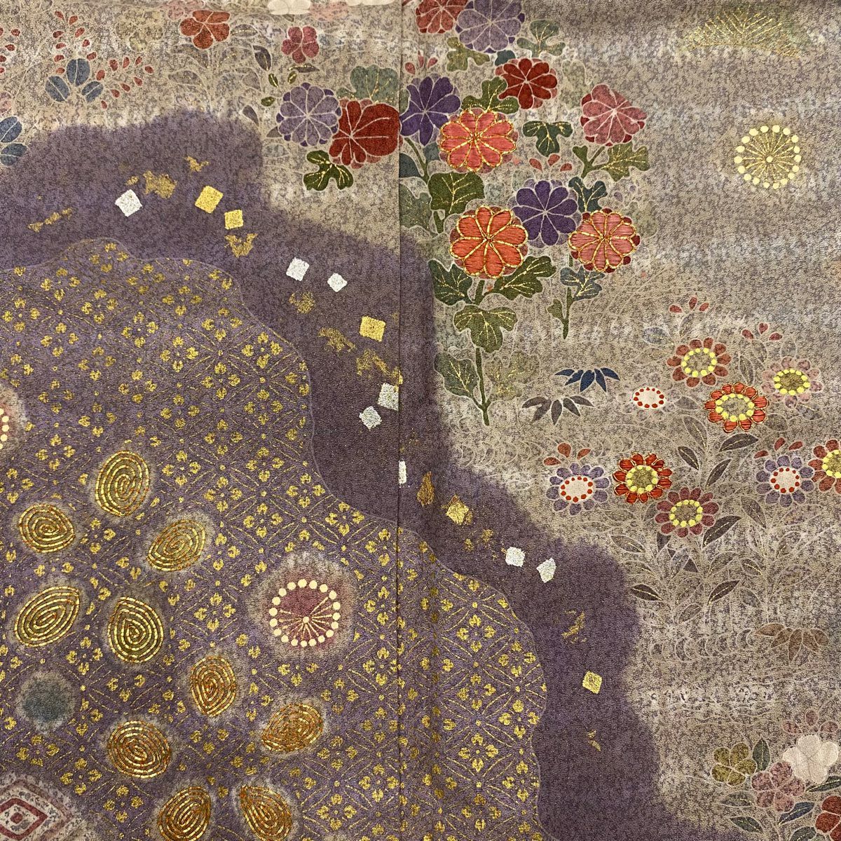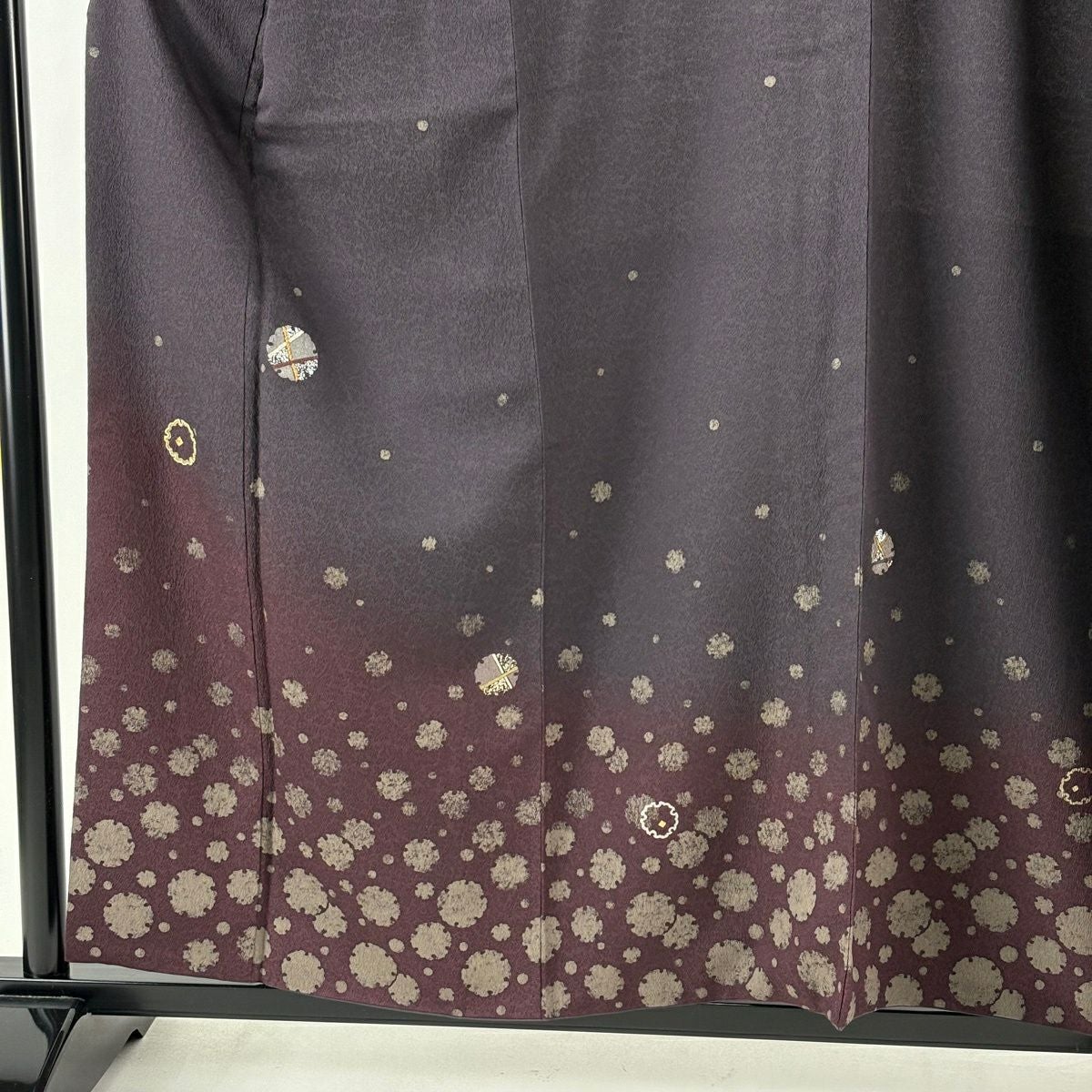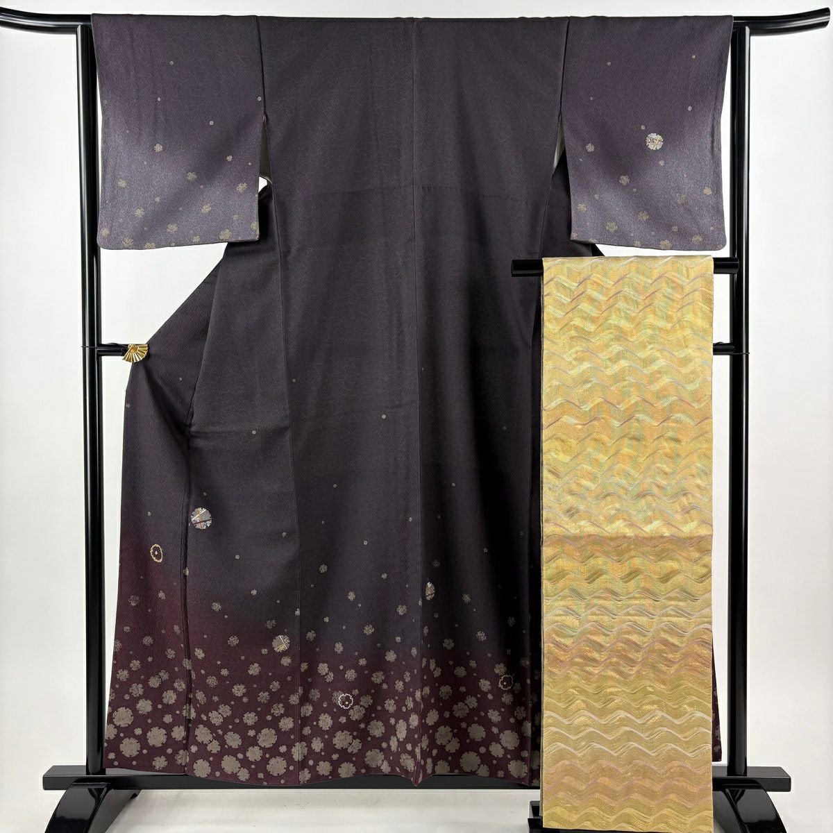 他の画像を見る 50%OFF 訪問着 身丈157cm 裄丈64.5cm M 袷 千地泰弘 落款あり 華文 片輪車 金彩 ぼかし 濃紫 正絹 秀品 K50 当店通常価格 ¥ 8,800 ¥ 4,400 税込