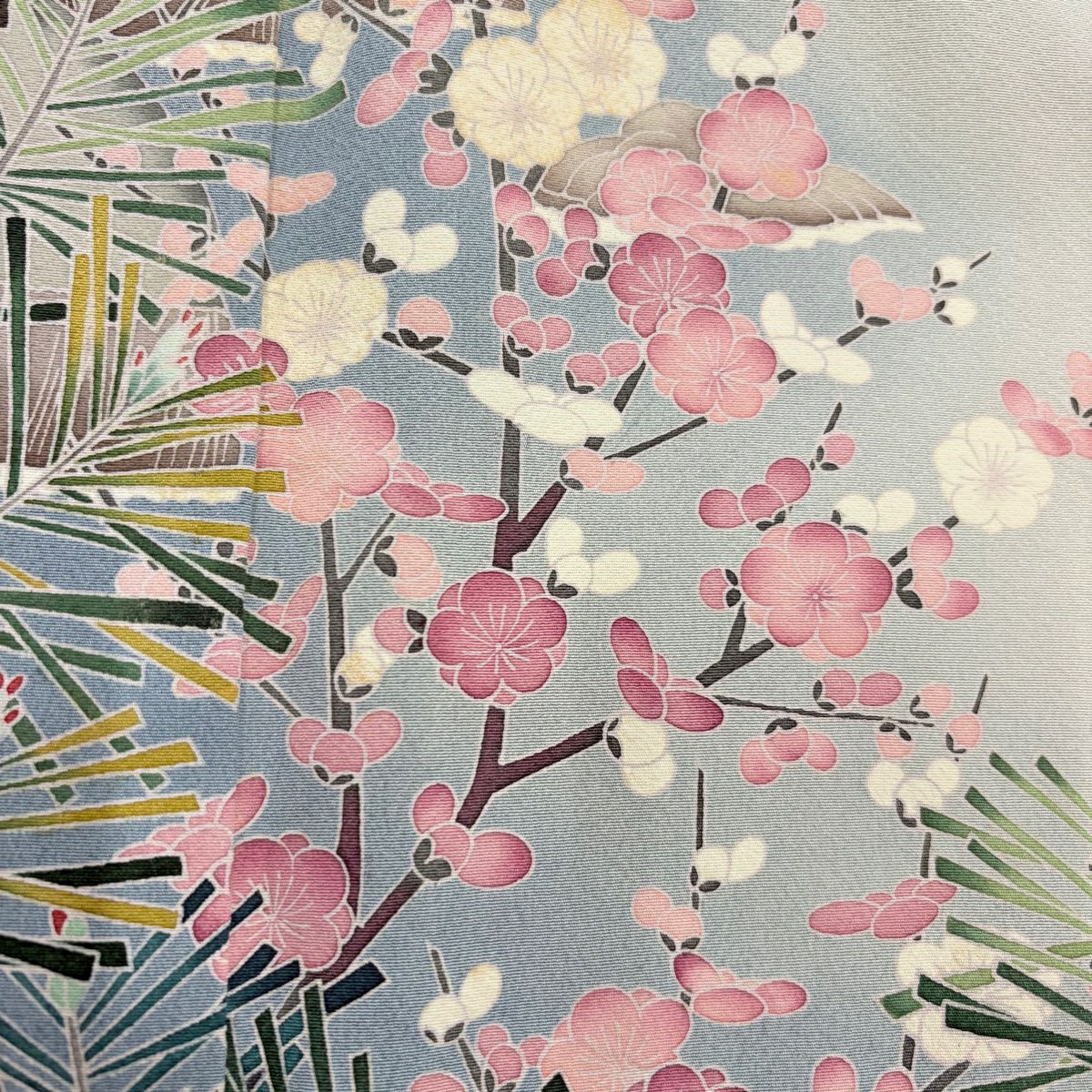 他の画像を見る 40%OFF 訪問着 身丈160cm 裄丈66cm M 袷 牛首紬地 落款あり 梅 露芝 金彩 絞り 青灰色 正絹 逸品 一つ紋 K30 当店通常価格 ¥ 50,800 ¥ 30,480 税込