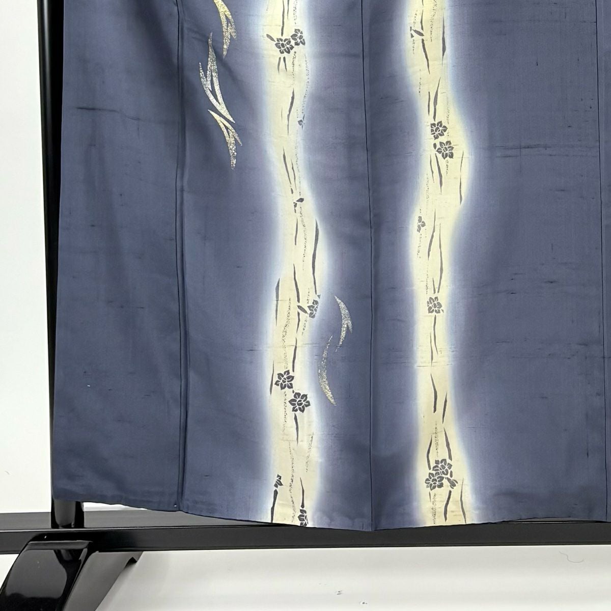 他の画像を見る 【最終値引き】 73%OFF 付下げ 身丈160cm 裄丈63.5cm S 袷 紬地 草花 幾何学 金銀彩 箔 紺色 正絹 名品 K70 当店通常価格 ¥ 17,800 ¥ 4,700 税込