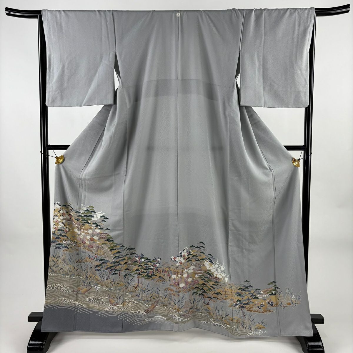 他の画像を見る 【最終値引き】 70%OFF 色留袖 身丈163.5cm 裄丈67cm M 袷 建物 松竹梅 金糸 金彩 灰色 正絹 秀品 一つ紋 K70 当店通常価格 ¥ 6,800 ¥ 1,980 税込