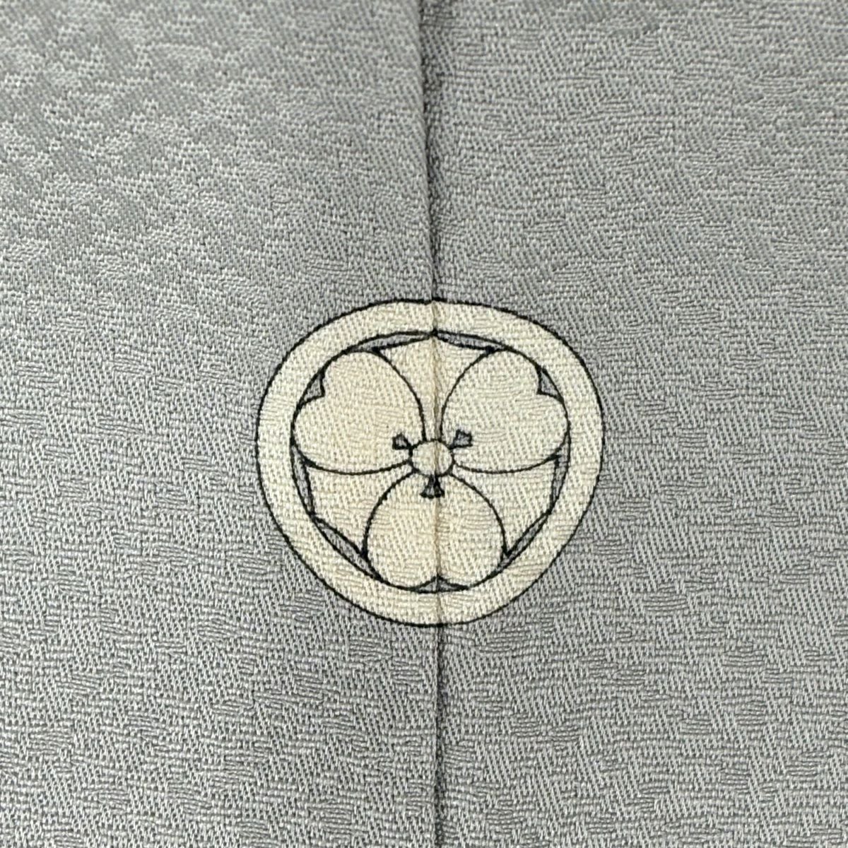 付下げ 身丈158.5cm 裄丈63cm S 紗袷 菊 霞 刺繍 ぼかし 灰緑 正絹 秀品