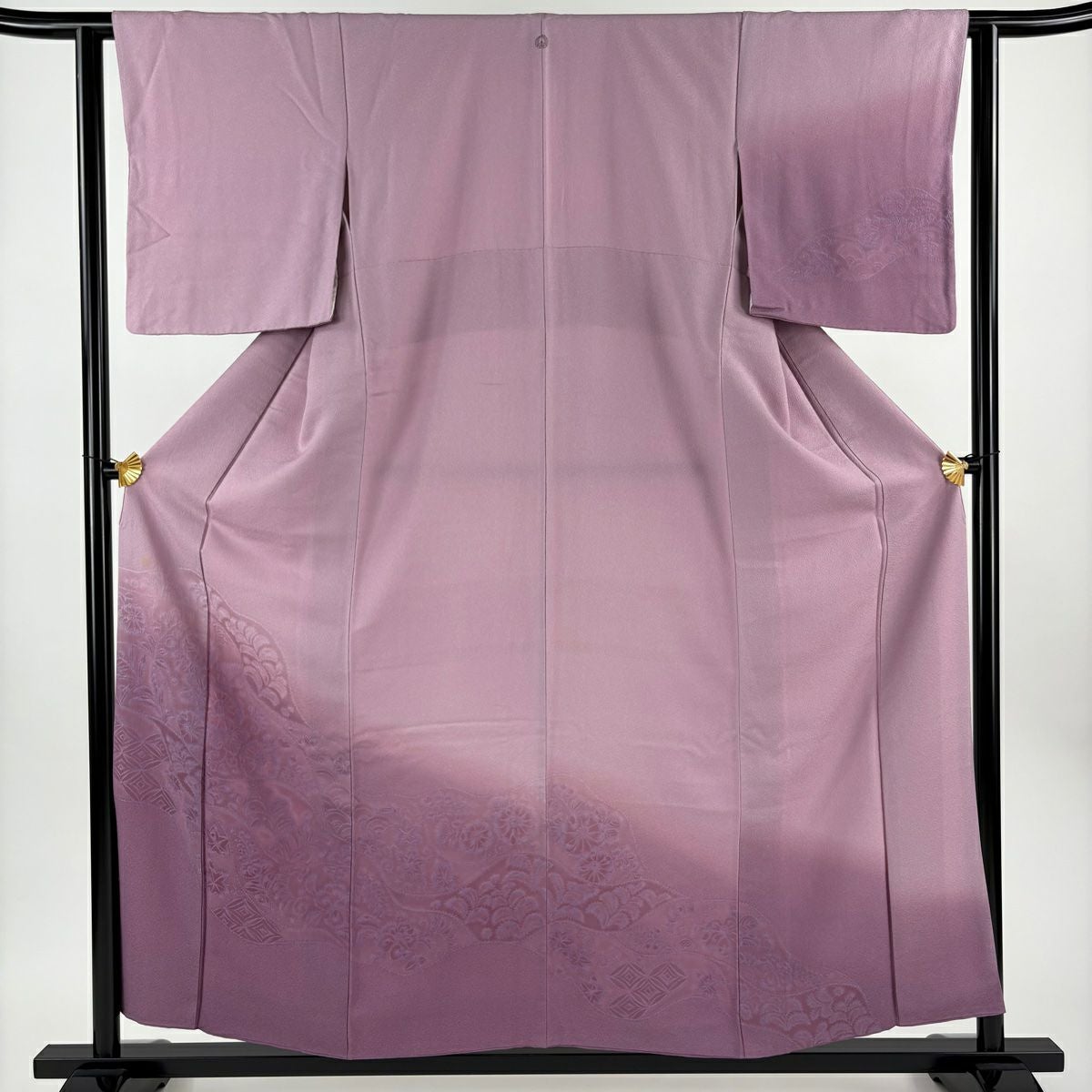 他の画像を見る 【最終値引き】 70%OFF 付下げ 身丈157cm 裄丈62.5cm S 袷 花唐草 七宝 裾ぼかし 薄紫 正絹 秀品 一つ紋 K70 当店通常価格 ¥ 6,800 ¥ 1,980 税込