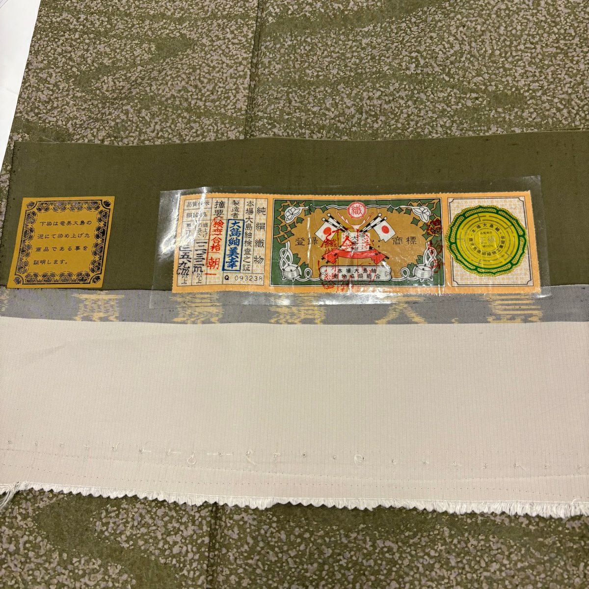 他の画像を見る 【最終値引き】 73%OFF 【美品】 大島紬 身丈166cm 裄丈64.5cm M 袷 証紙あり 流水 幾何学 鶯色 正絹 名品 K70 当店通常価格 ¥ 17,800 ¥ 4,700 税込