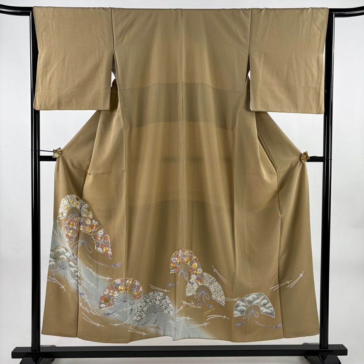 他の画像を見る 【最終値引き】 70%OFF 色留袖 身丈152cm 裄丈64.5cm M 袷 扇 松竹梅 金糸 金銀彩 ベージュ 正絹 秀品 K70 当店通常価格 ¥ 6,800 ¥ 1,980 税込