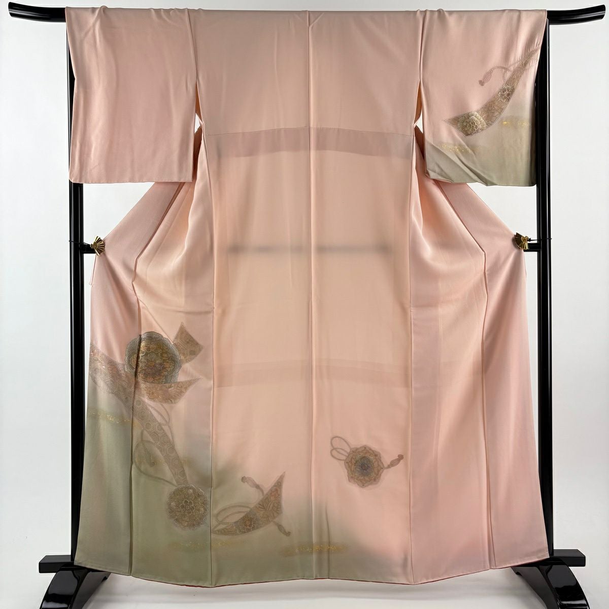 他の画像を見る 【最終値引き】 77%OFF 訪問着 身丈164cm 裄丈65cm M 袷 道長取り 草花 金彩 薄ピンク 正絹 秀品 一つ紋 K70 当店通常価格 ¥ 8,800 ¥ 1,980 税込