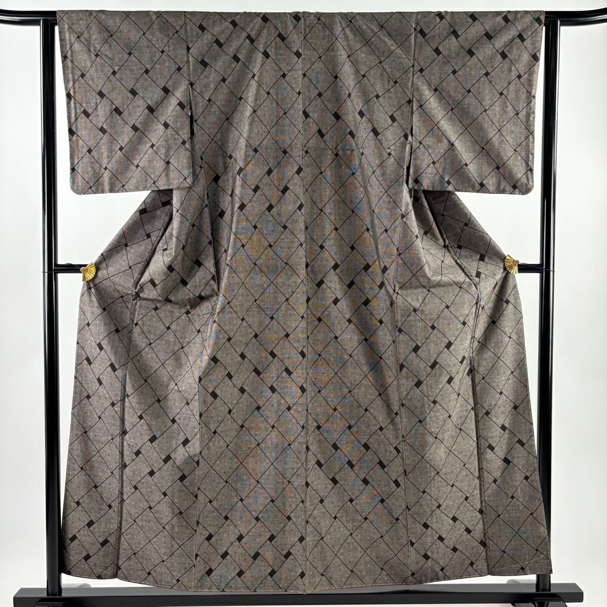 【美品】 小紋 身丈161cm 裄丈62.5cm S 紗絽袷 扇 灰色 正絹 名品