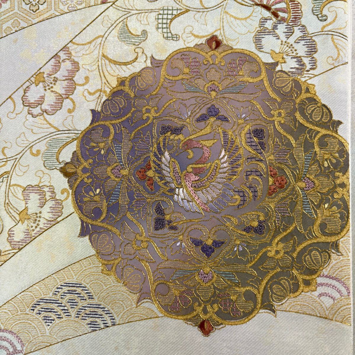 他の画像を見る 50%OFF 【美品】 訪問着 身丈162cm 裄丈64cm M 袷 袋帯セット 扇面 笹 刺繍 ぼかし ベージュ 正絹 秀品 K50 当店通常価格 ¥ 20,800 ¥ 10,400 税込