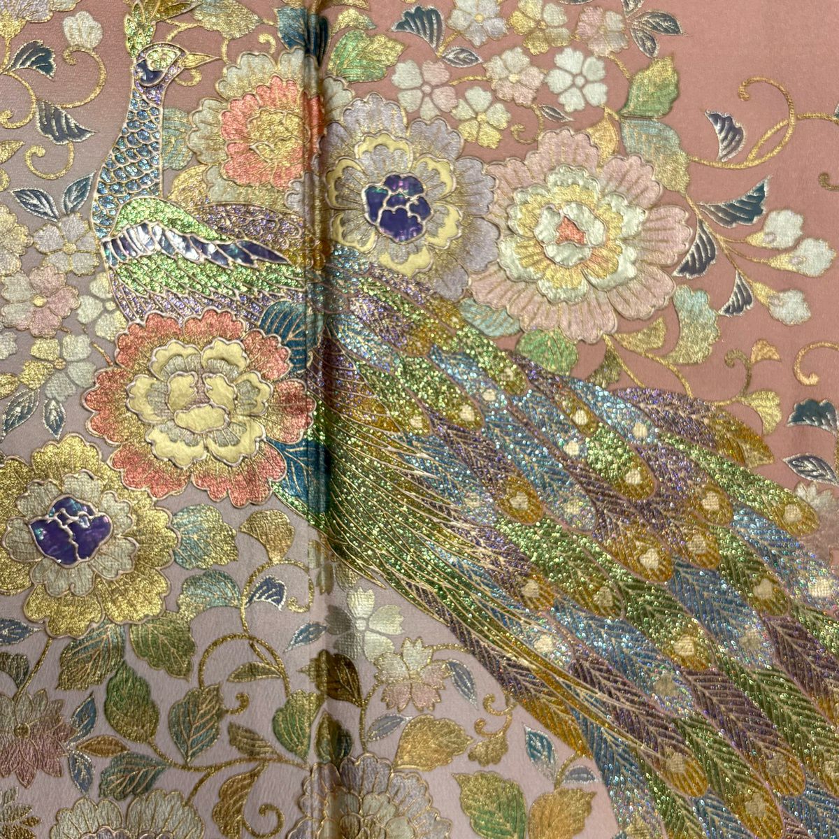 他の画像を見る 50%OFF 付下げ 身丈160cm 裄丈66cm M 袷 和田光正 落款あり 御所車 草花 金銀彩 サーモンピンク 正絹 名品 K50 当店通常価格 ¥ 13,800 ¥ 6,900 税込