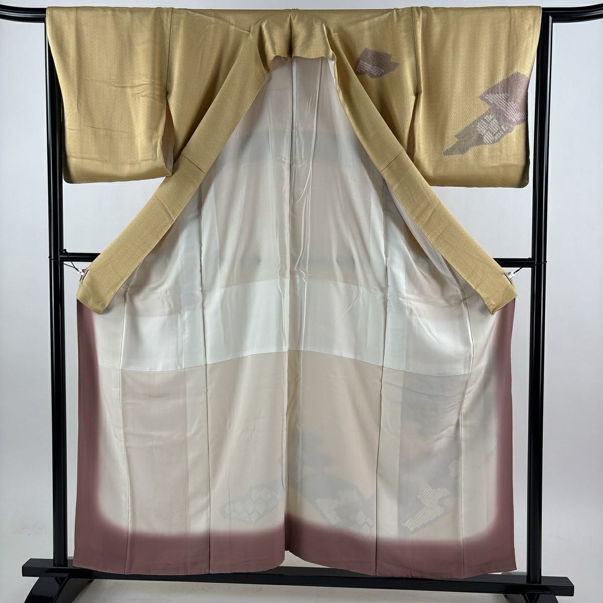 訪問着 身丈156cm 裄丈62cm S 紗袷 女郎花 萩 銀彩 ぼかし 灰色 正絹 名品