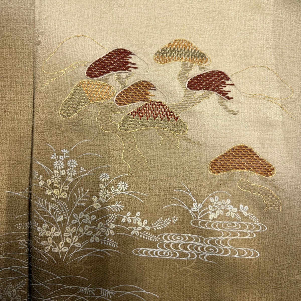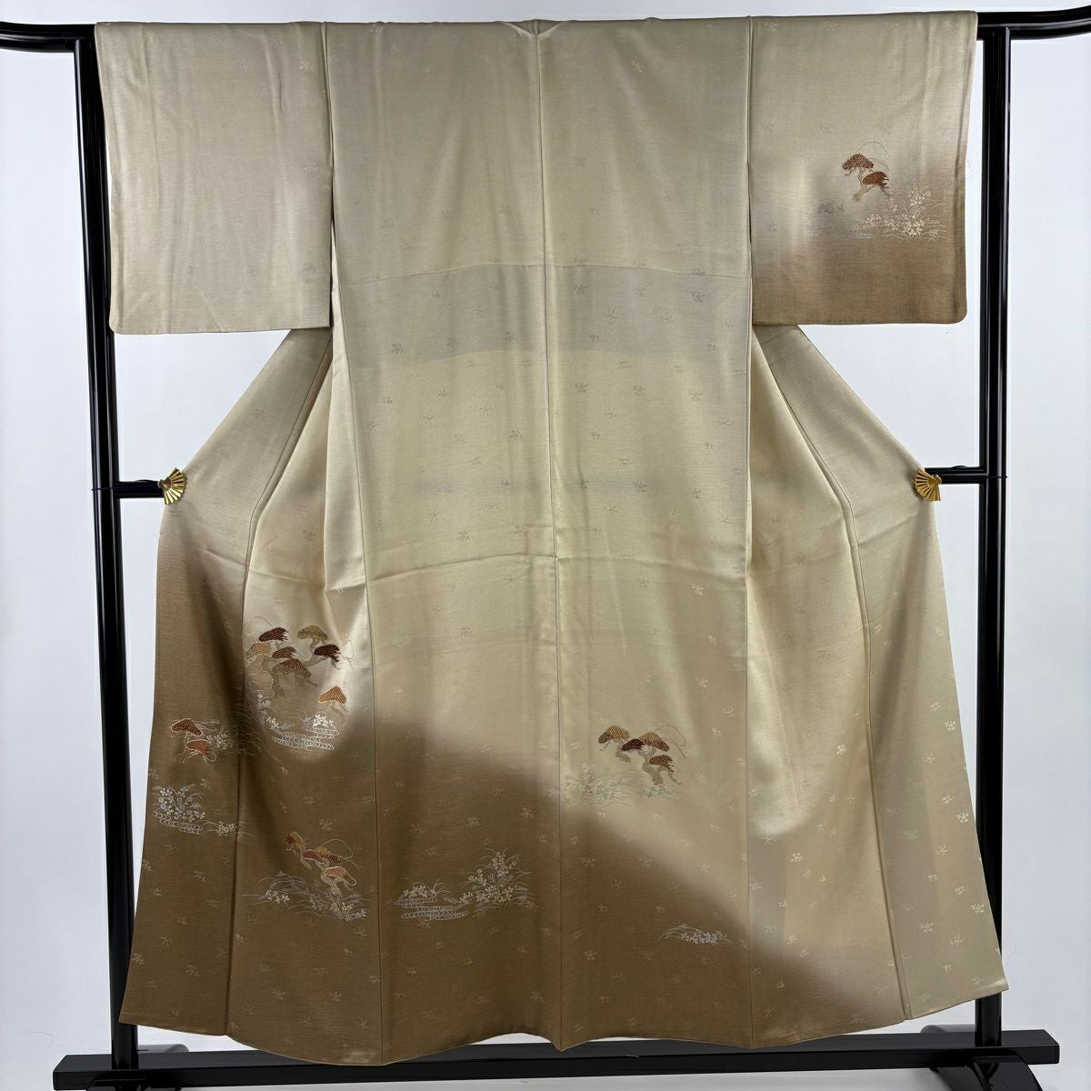 他の画像を見る 【最終値引き】 70%OFF 付下げ 身丈154cm 裄丈63.5cm S 袷 笠松 秋草 刺繍 金銀彩 ベージュ 正絹 秀品 K70 当店通常価格 ¥ 6,800 ¥ 1,980 税込