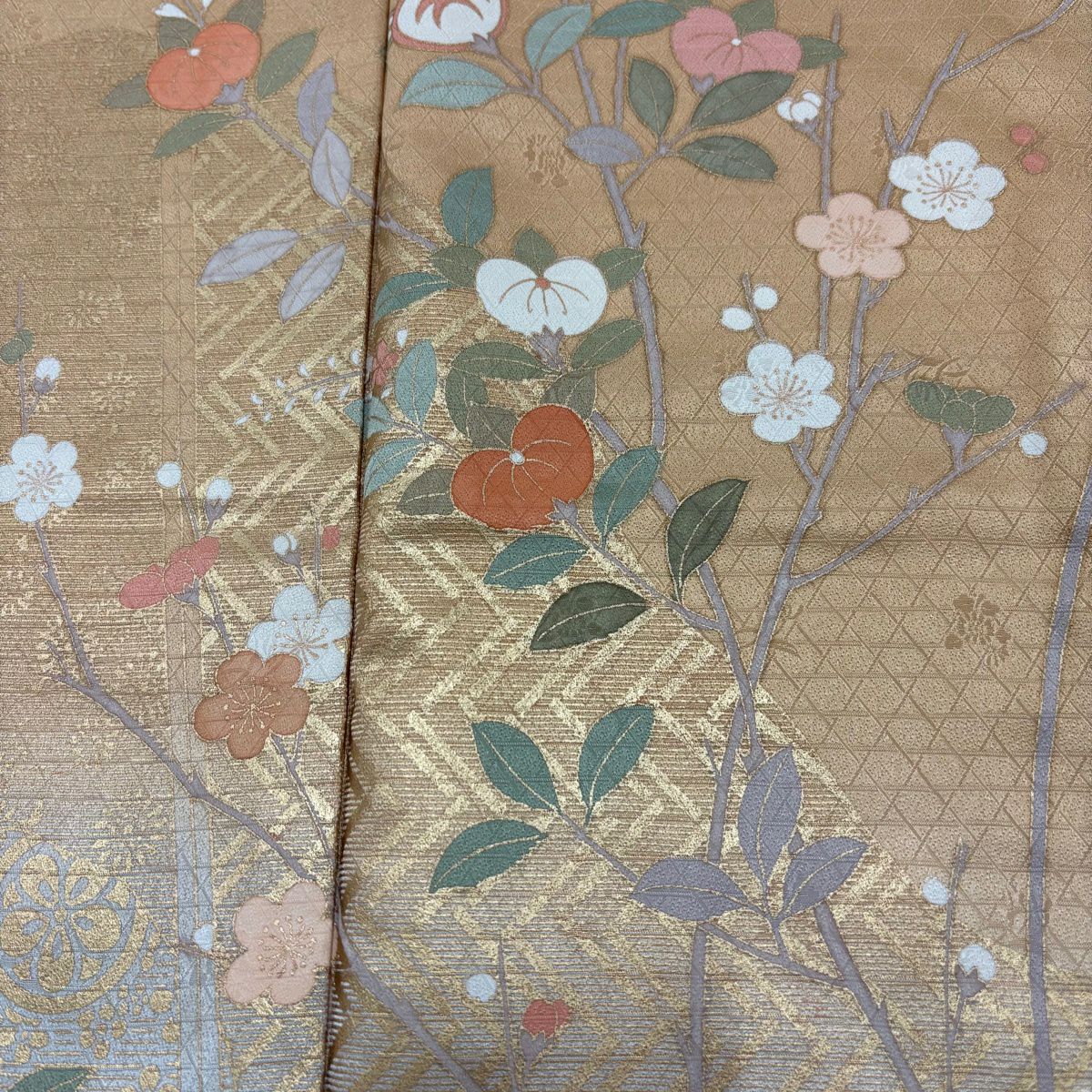 他の画像を見る 【最終値引き】 73%OFF 訪問着 身丈161.5cm 裄丈66cm M 袷 橘花 枝梅 金彩 ぼかし 薄オレンジ 正絹 名品 K70 当店通常価格 ¥ 17,800 ¥ 4,700 税込