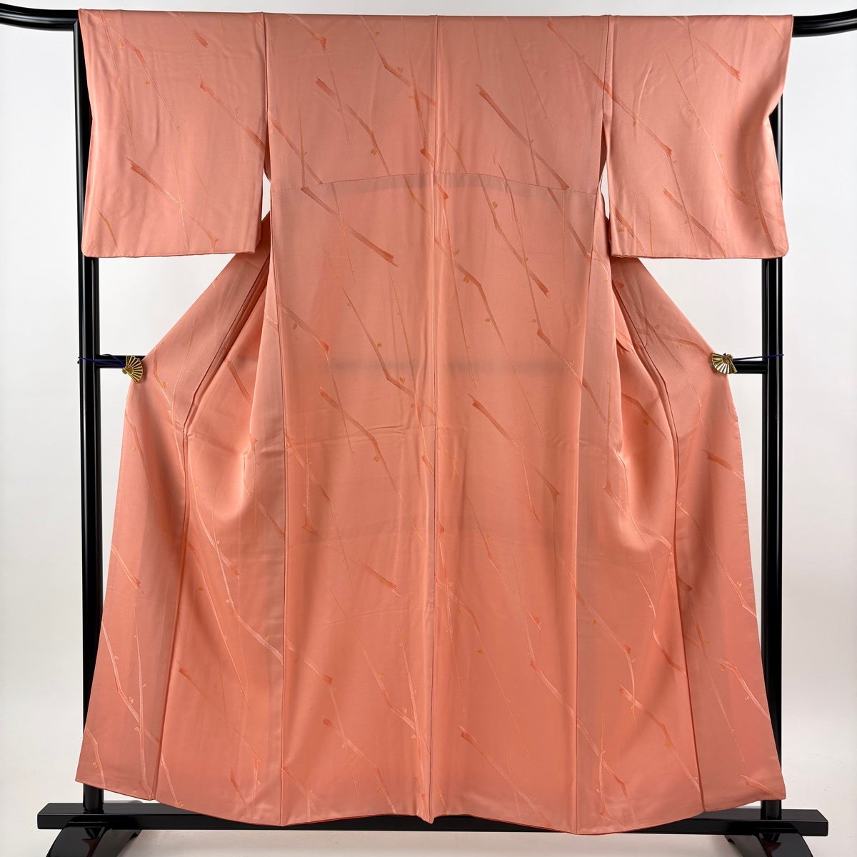 色無地 身丈162.5cm 裄丈63.5cm S 袷 ピンク 正絹 優品 一つ紋