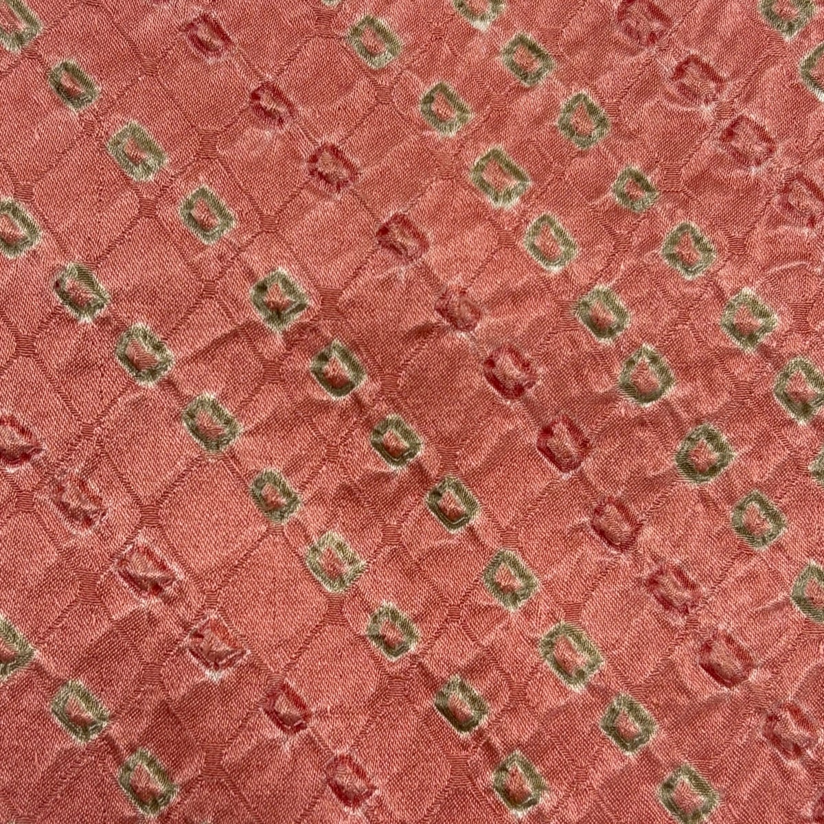 小紋 身丈161.5cm 裄丈66.5cm M 袷 扇 菊 縮緬 赤茶 正絹 優品