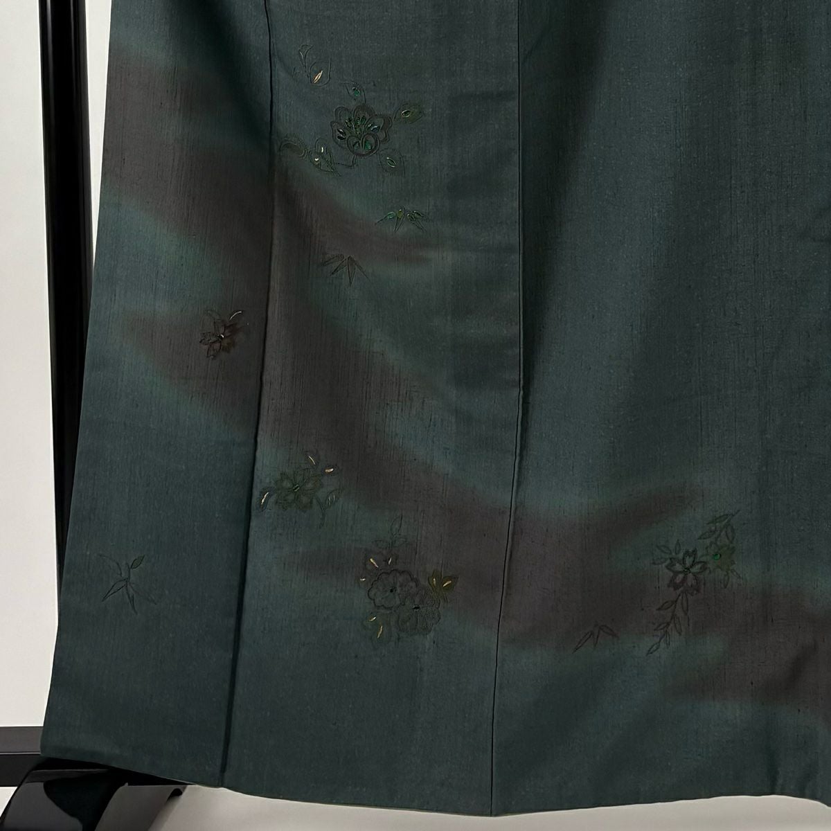 他の画像を見る 【最終値引き】 73%OFF 付下げ 身丈162cm 裄丈64.5cm M 袷 やまと 紬地 枝花 笹 金糸 刺繍 深緑 正絹 名品 K70 当店通常価格 ¥ 17,800 ¥ 4,700 税込