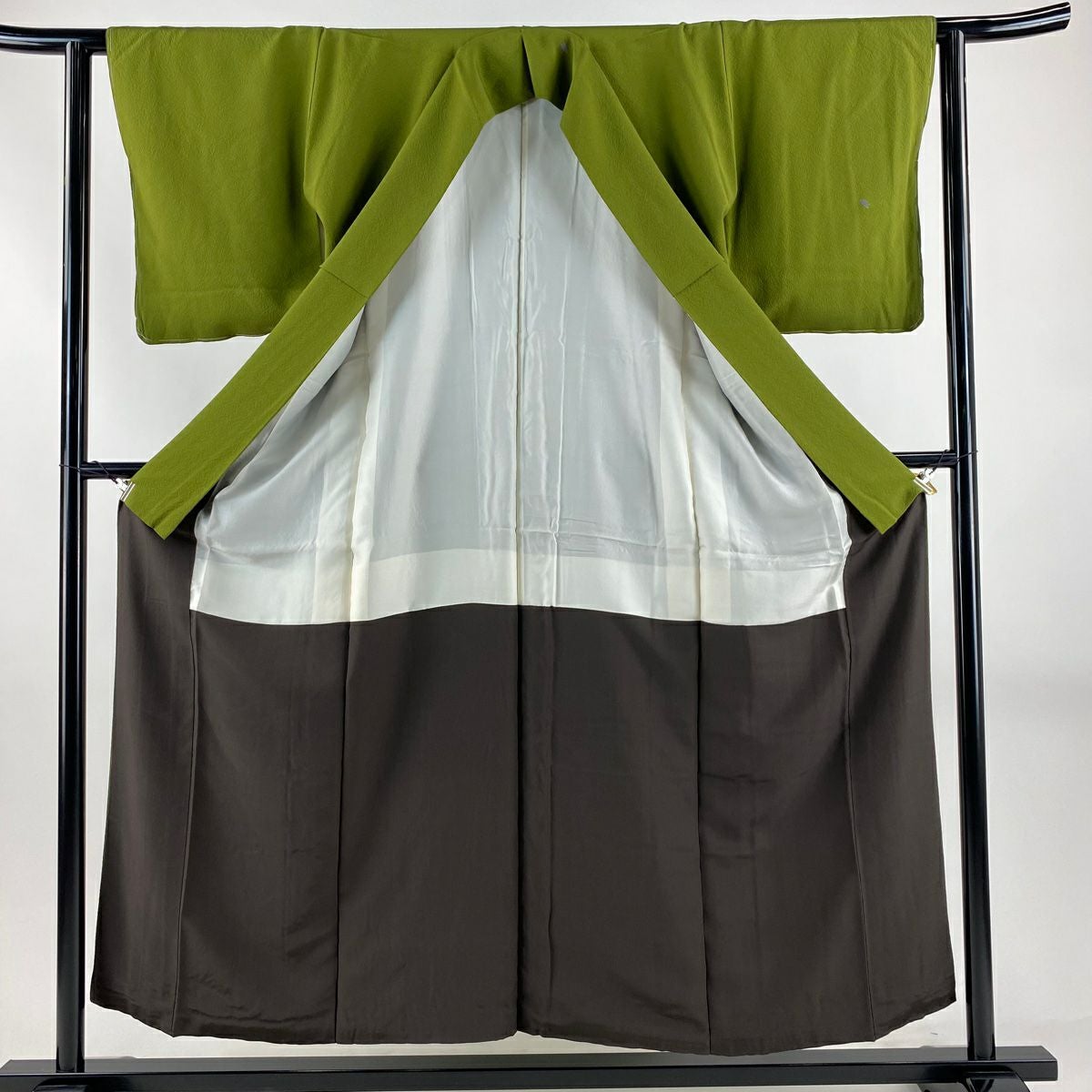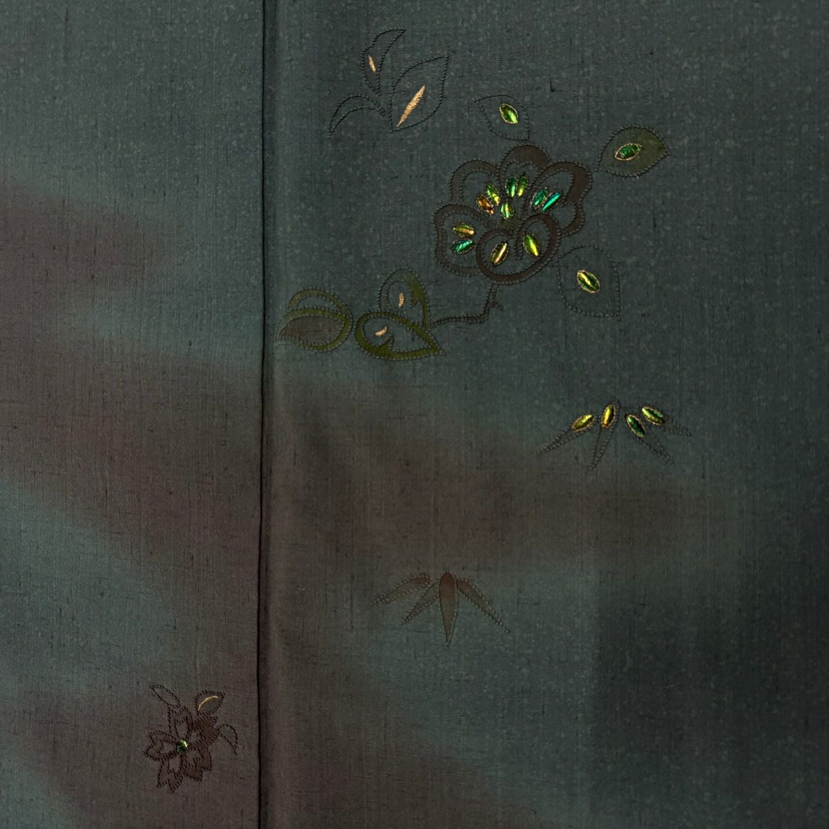 他の画像を見る 【最終値引き】 77%OFF 【美品】 付下げ 身丈155cm 裄丈62.5cm S 袷 鏡裏文 地紋 刺繍 ぼかし 抹茶色 正絹 秀品 K70 当店通常価格 ¥ 8,800 ¥ 1,980 税込