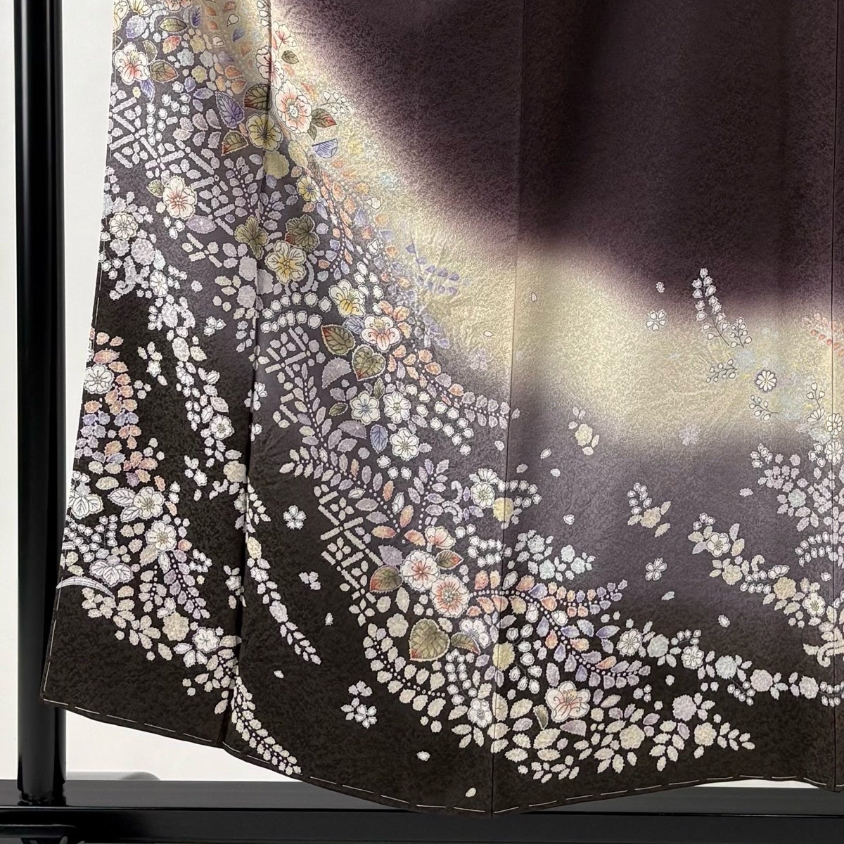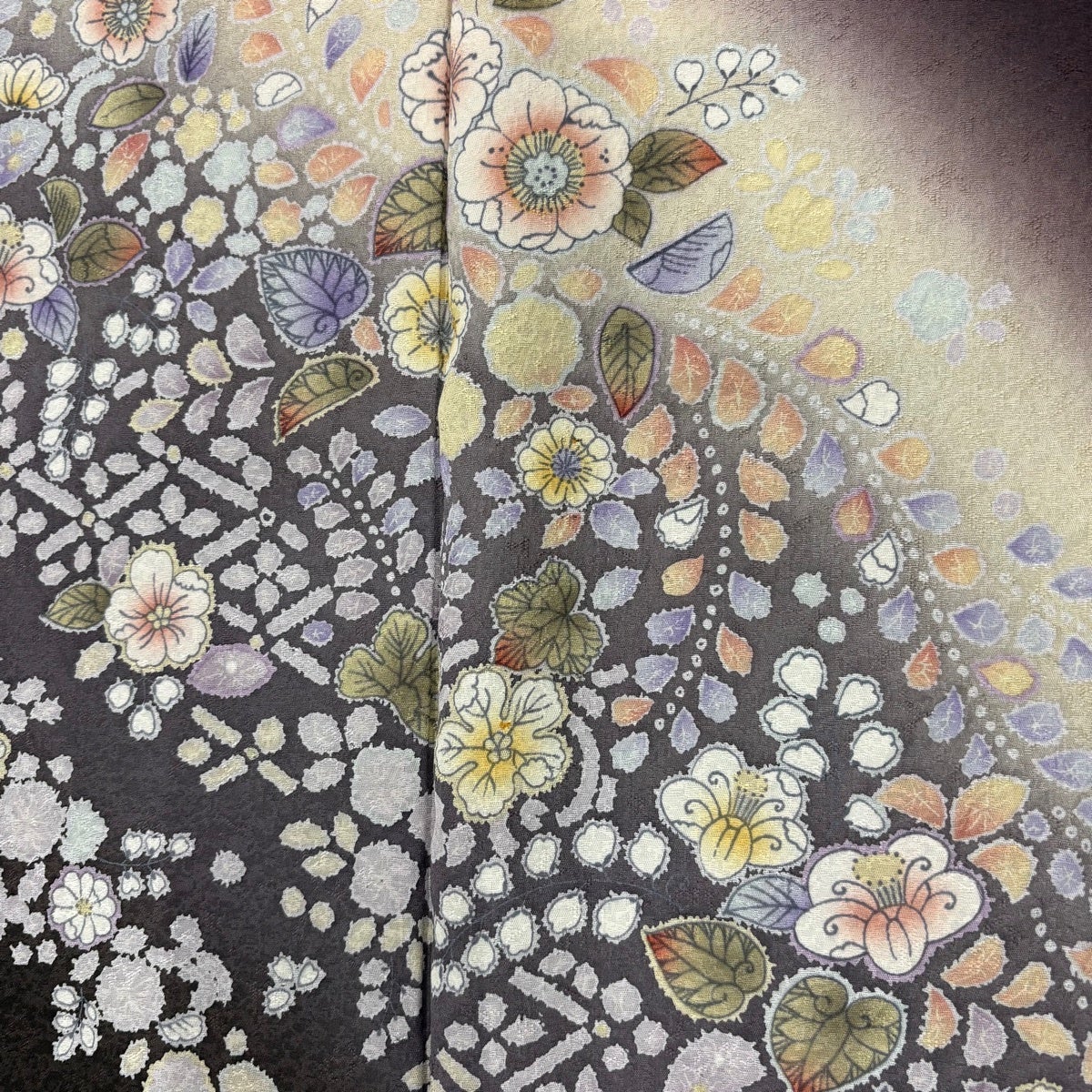 【美品】 訪問着 身丈160cm 裄丈66cm M 袷 草花 灰茶 正絹 秀品
