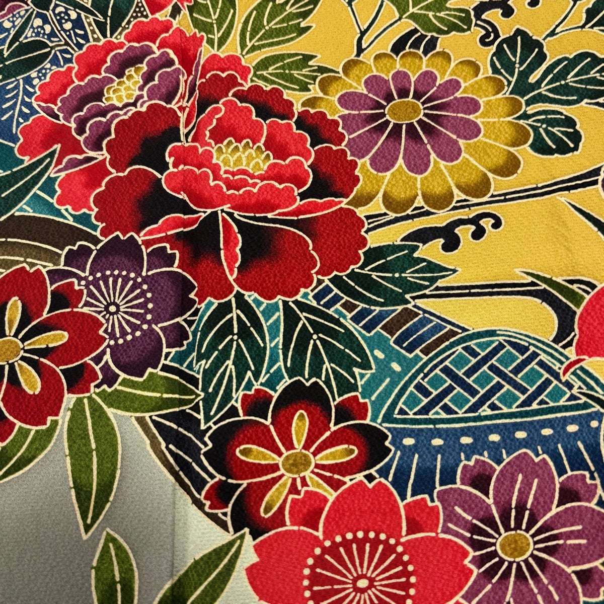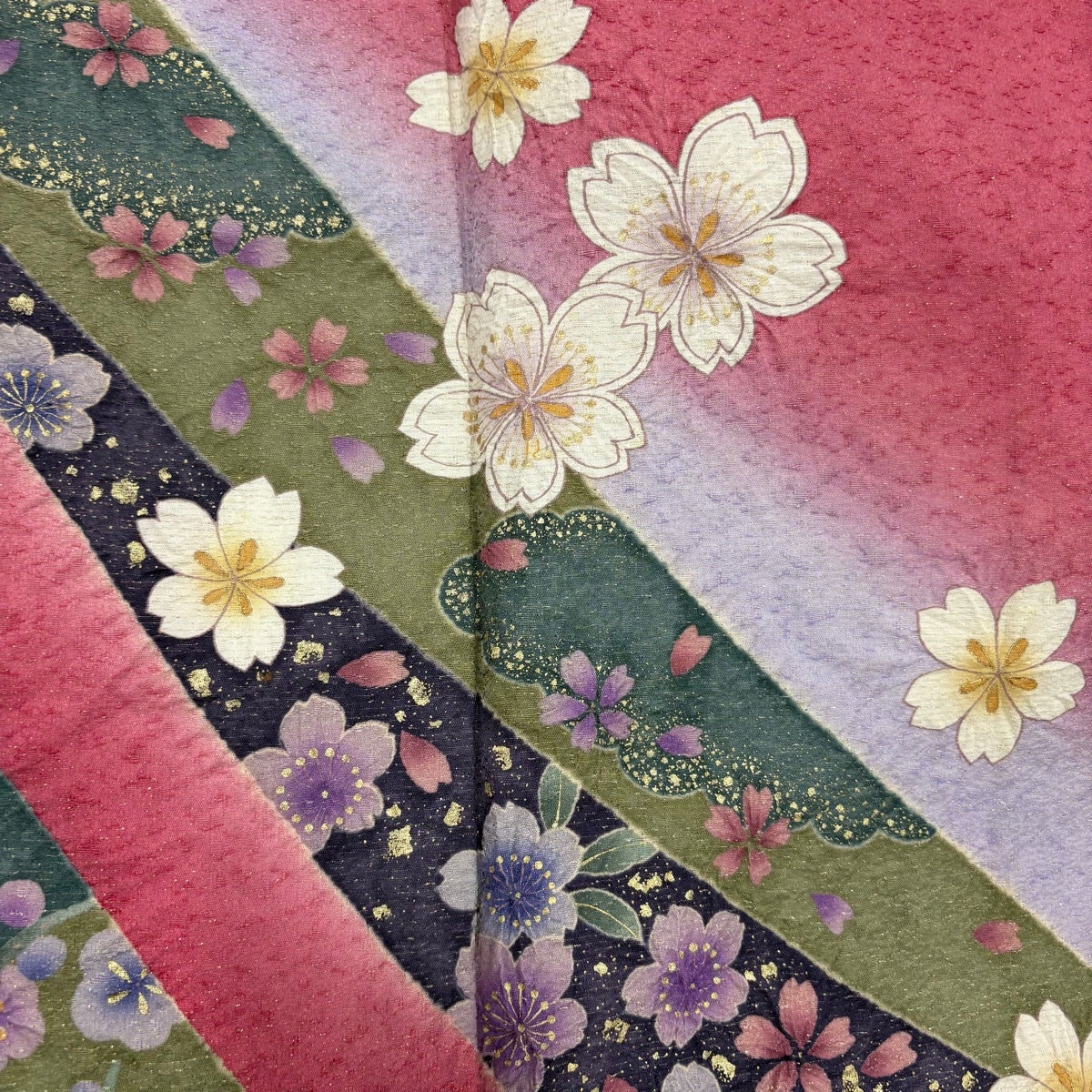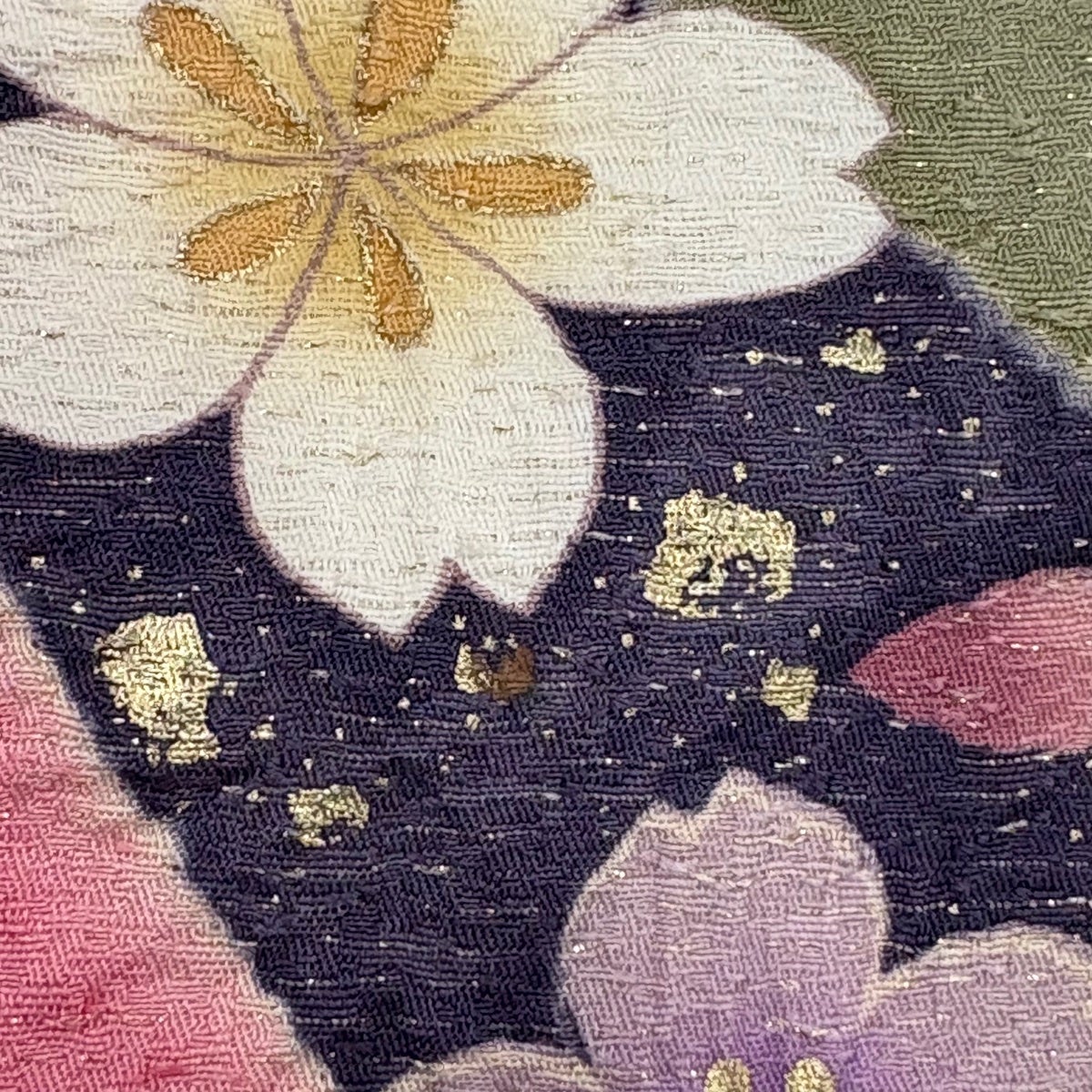 振袖 身丈164cm 裄丈66.5cm M 袷 桜 松竹梅 箔 金彩 青緑 正絹 名品