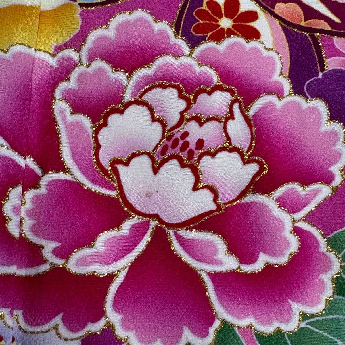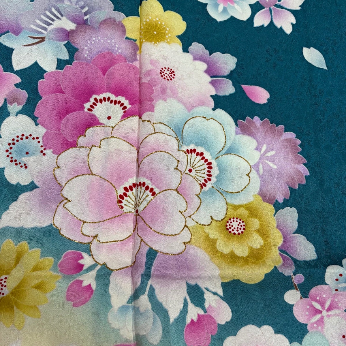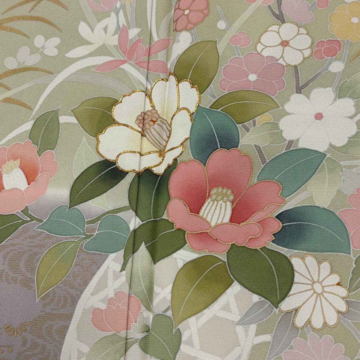 振袖 身丈164cm 裄丈66.5cm M 袷 桜 松竹梅 箔 金彩 青緑 正絹 名品