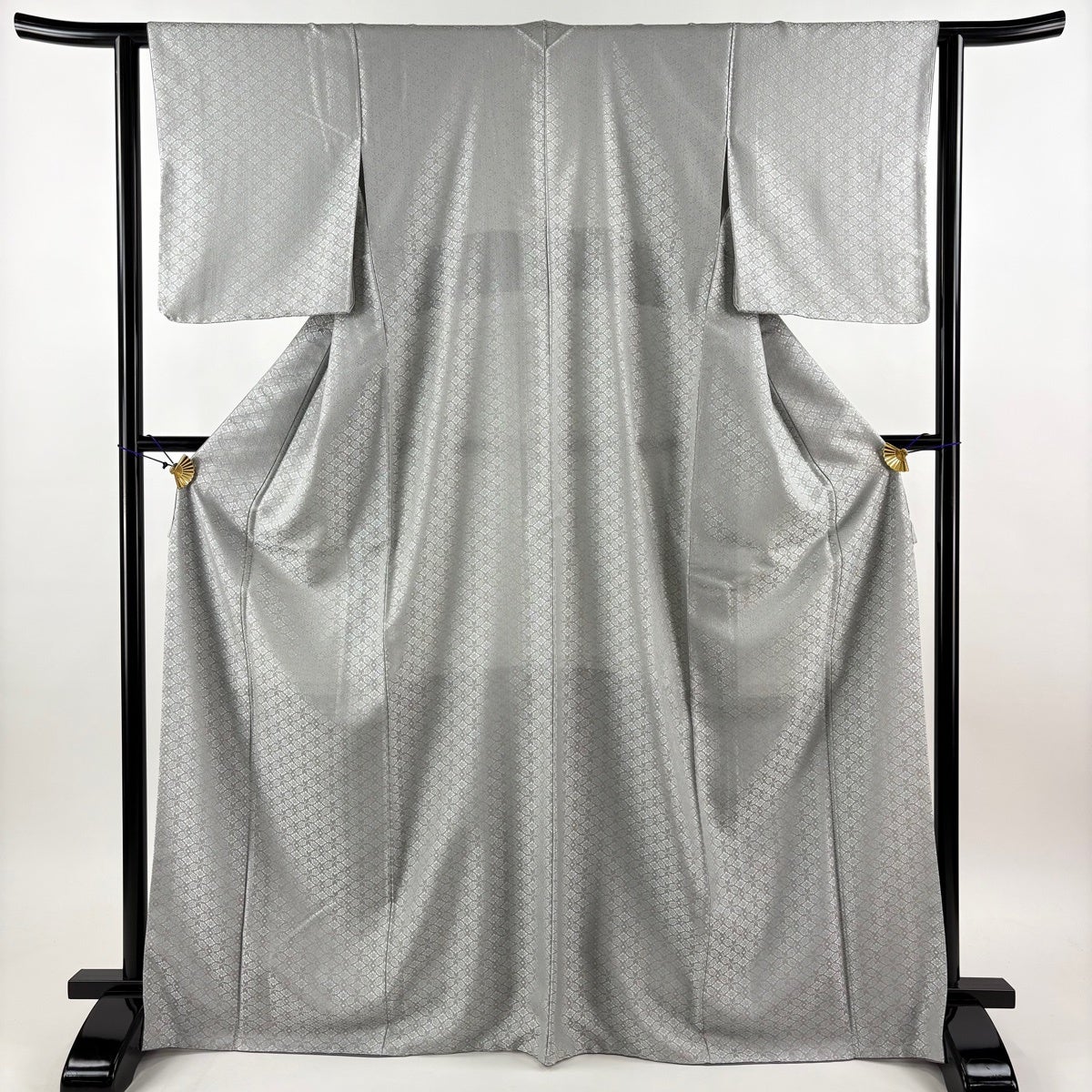 【美品】 お召 身丈169cm 裄丈61.5cm S 袷 七宝 花菱 灰紫 正絹 逸品