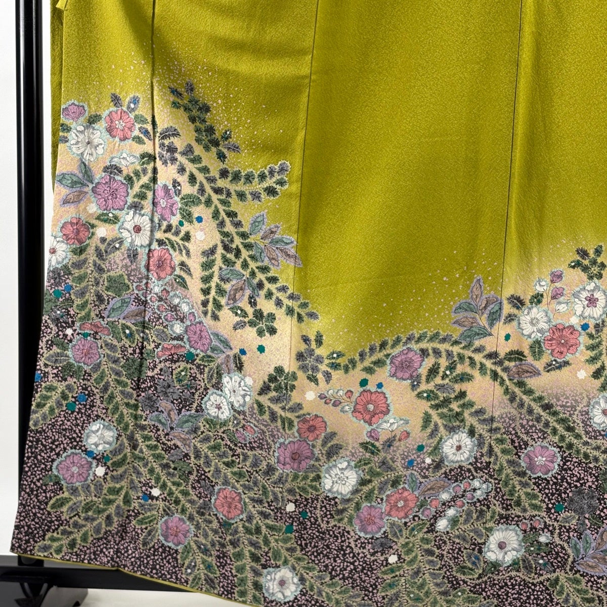 振袖 身丈161cm 裄丈66cm M 袷 落款あり 辻が花 ぼかし 鶯色 正絹 名品