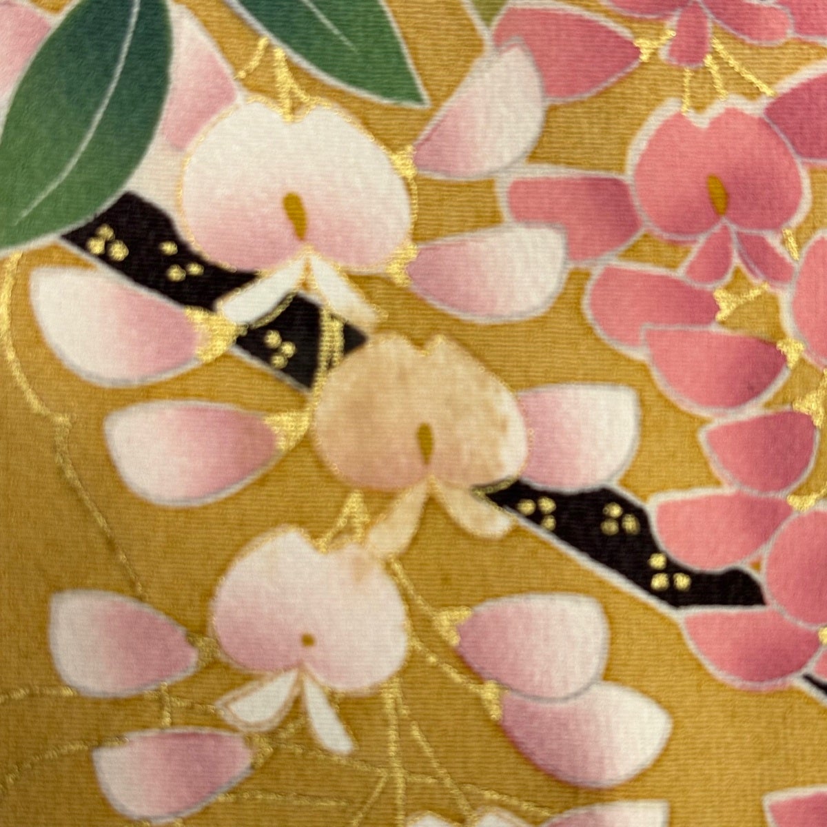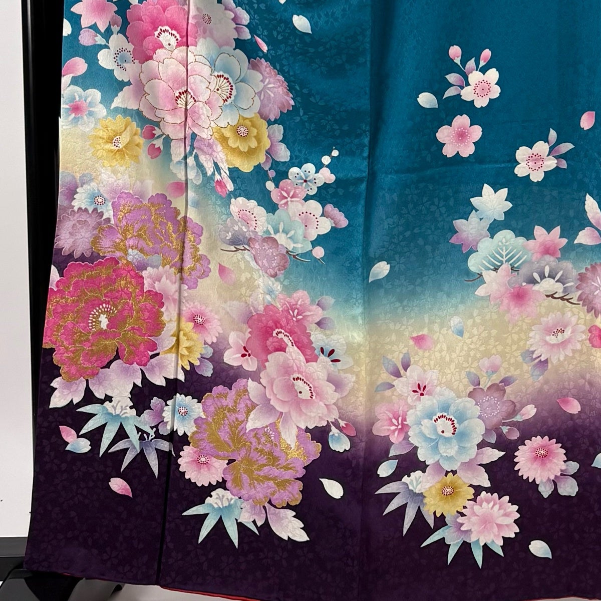 【美品】 振袖 身丈169cm 裄丈67cm M 袷 桜 金糸 ぼかし 黒 正絹 名品