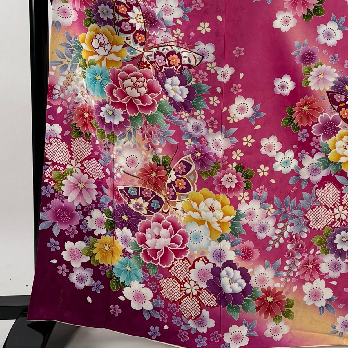 振袖 身丈167cm 裄丈66cm M 袷 蝶 草花 箔 ぼかし ピンク 正絹 名品
