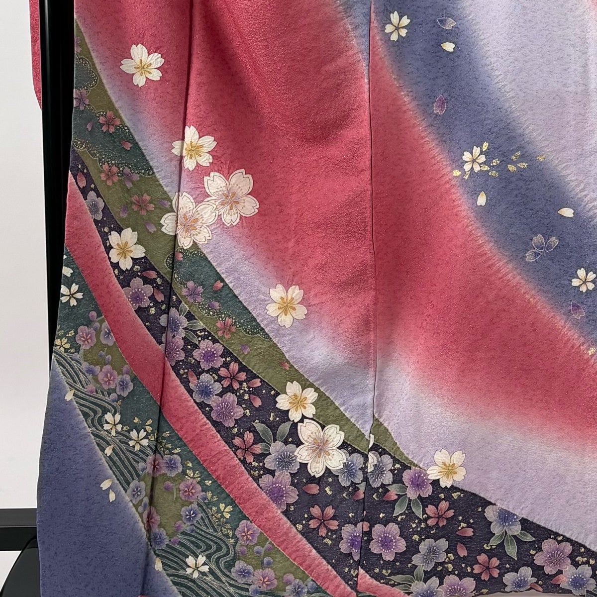 振袖 身丈168cm 裄丈69cm L 袷 桜 流水 金通し 金彩 ピンク 正絹 名品