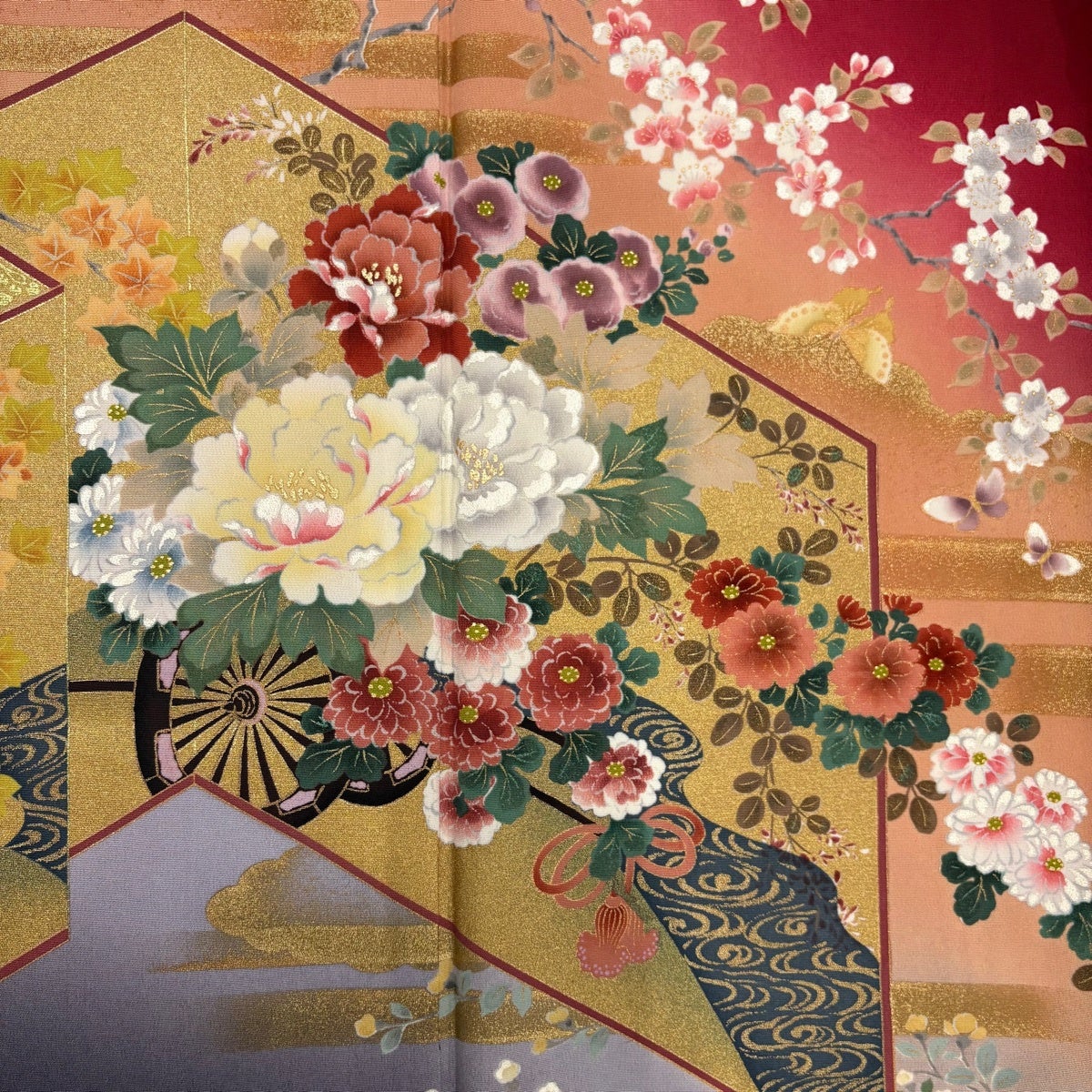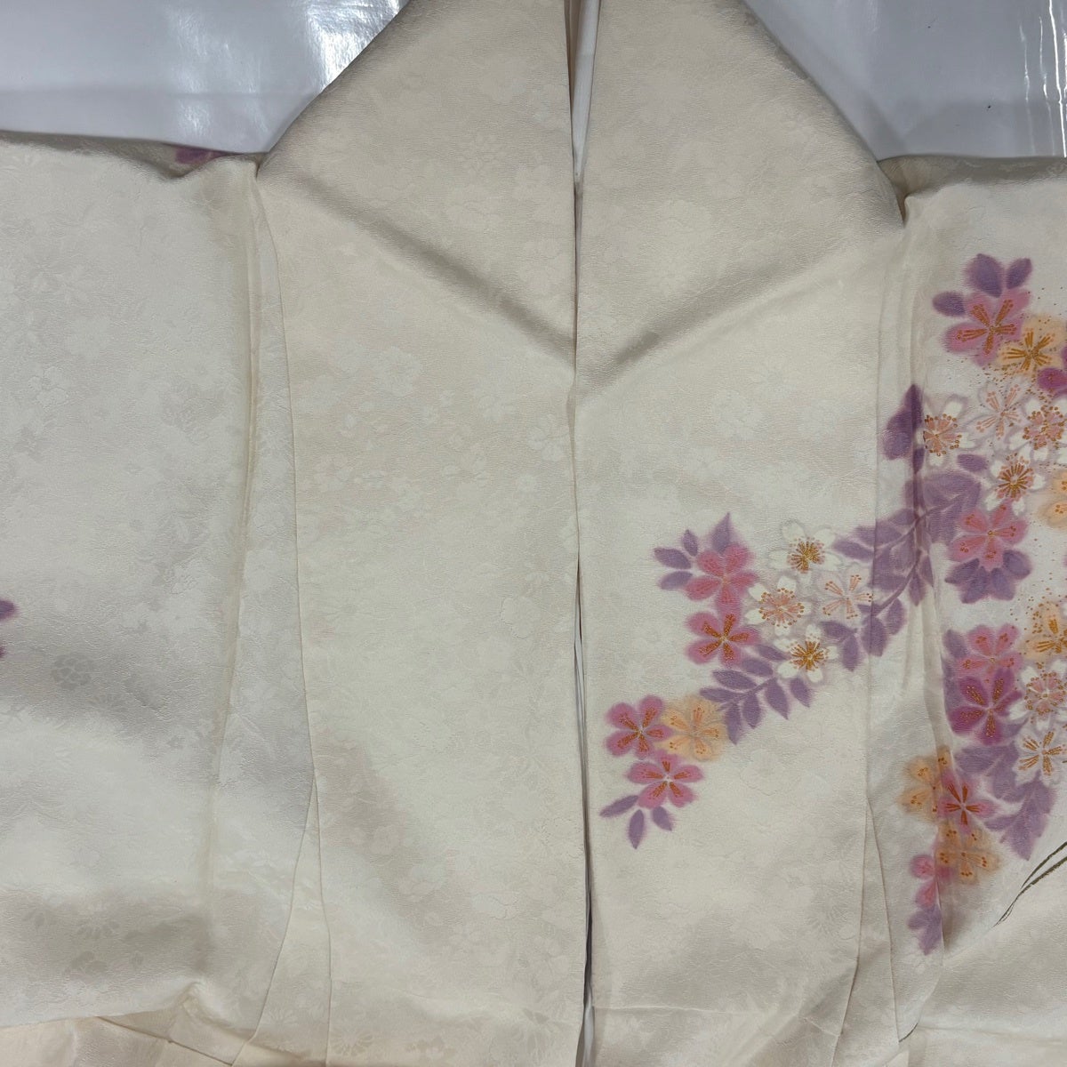 振袖 身丈163cm 裄丈69cm L 袷 桜 流水 金銀糸 金彩 クリーム 正絹 名品