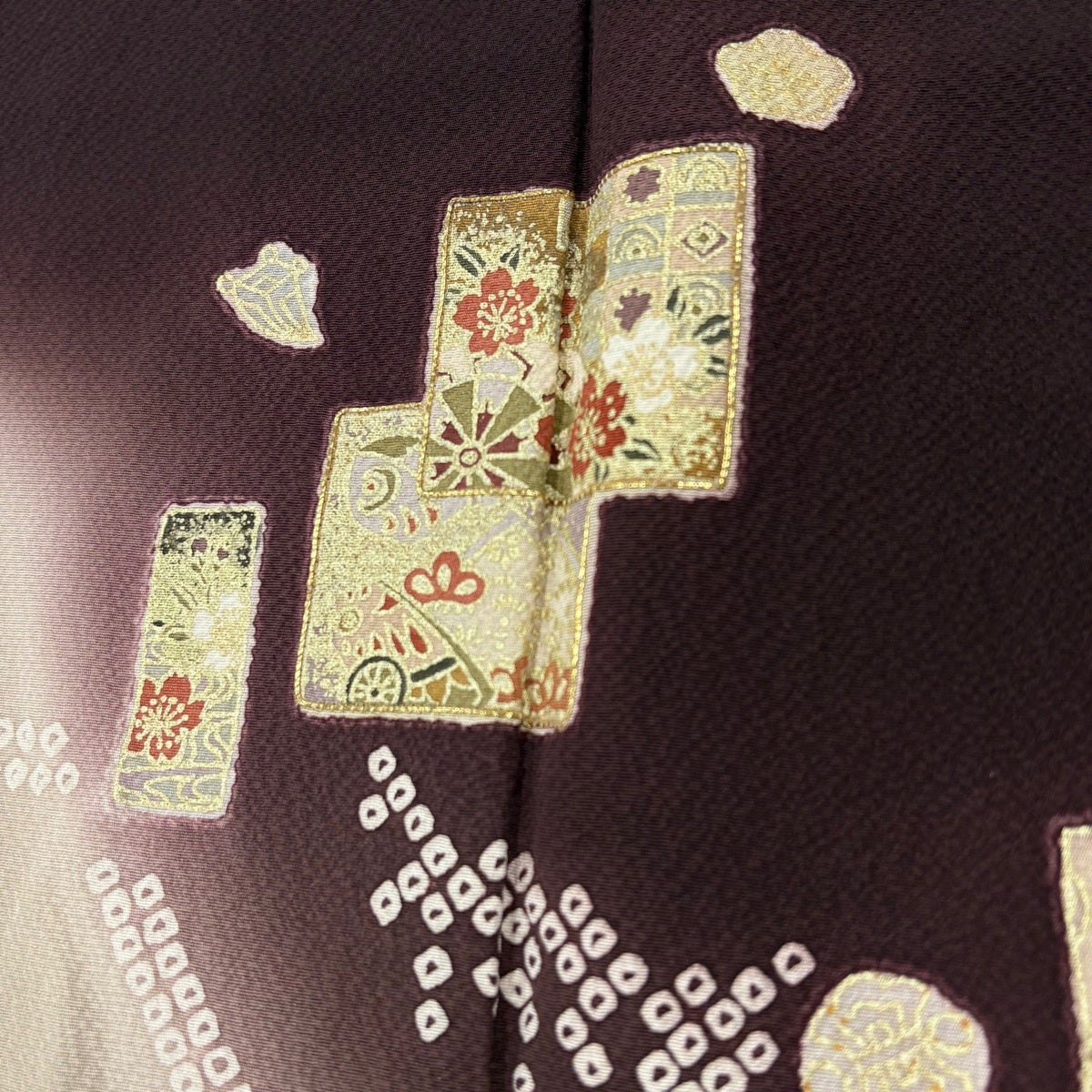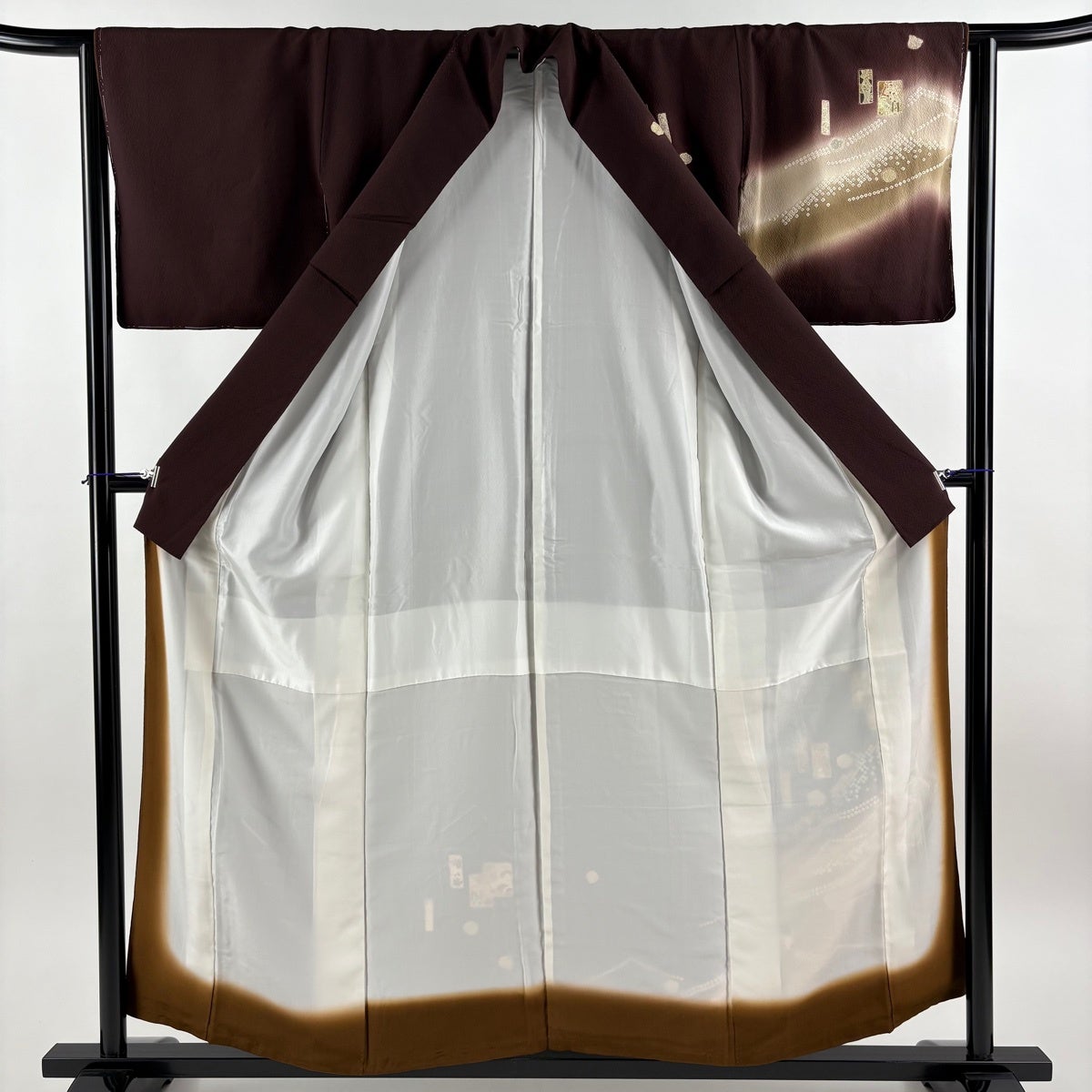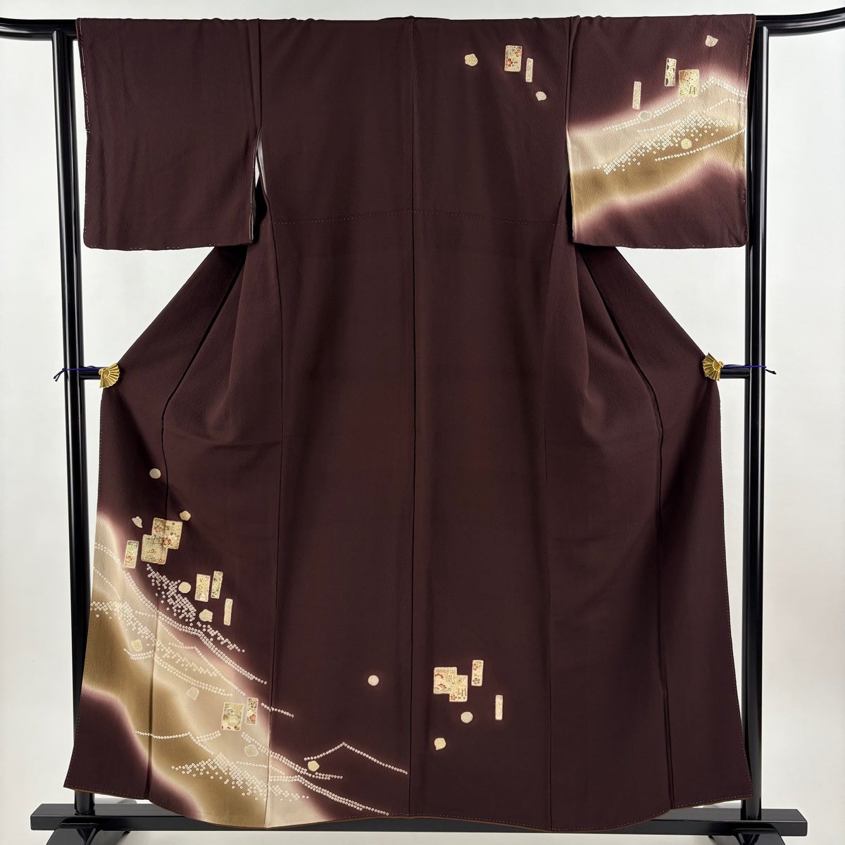 付下げ 身丈155.5cm 裄丈64cm M 袷 色紙 波 金糸 金彩 茶紫 正絹 秀品
