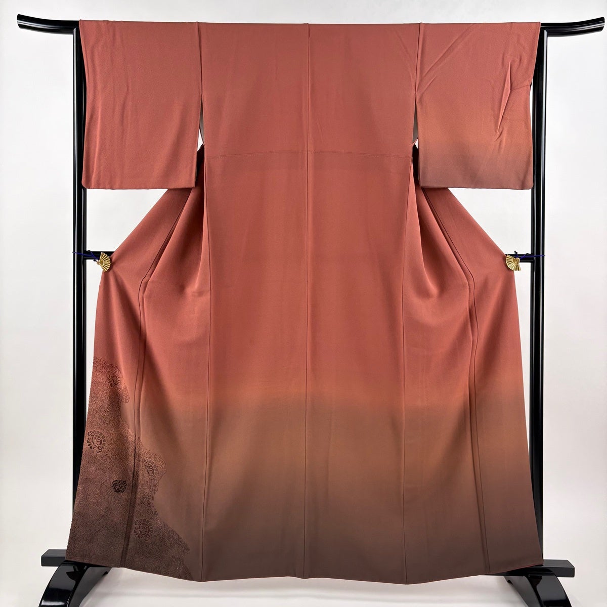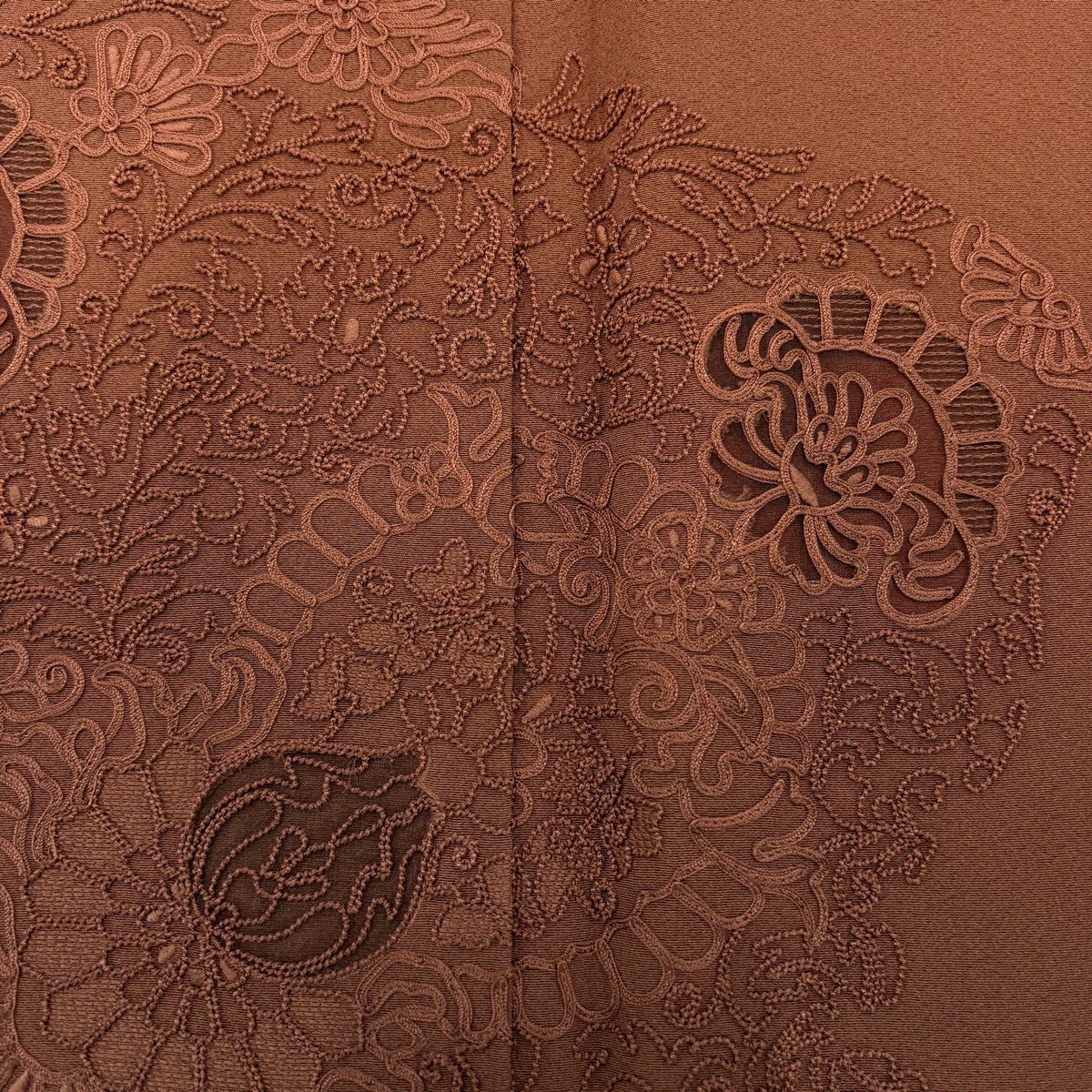 付下げ 身丈161.5cm 裄丈65cm M 袷 花唐草 刺繍 ぼかし 赤茶 正絹 秀品