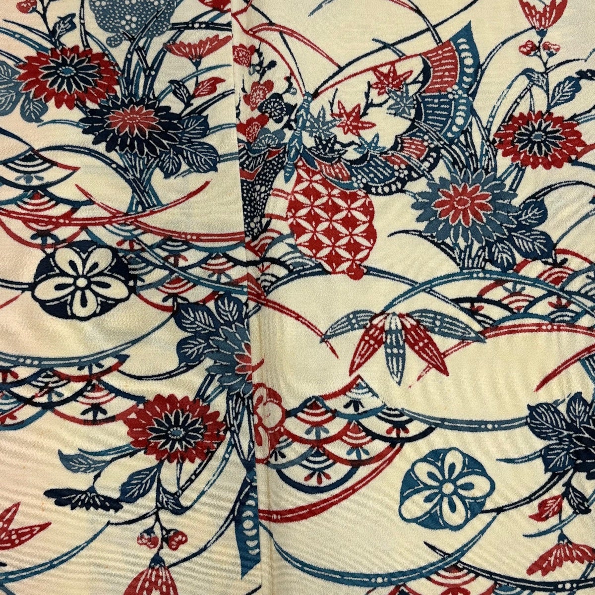【美品】 小紋 身丈153cm 裄丈67cm M 袷 草花 組紐 クリーム 正絹 優品