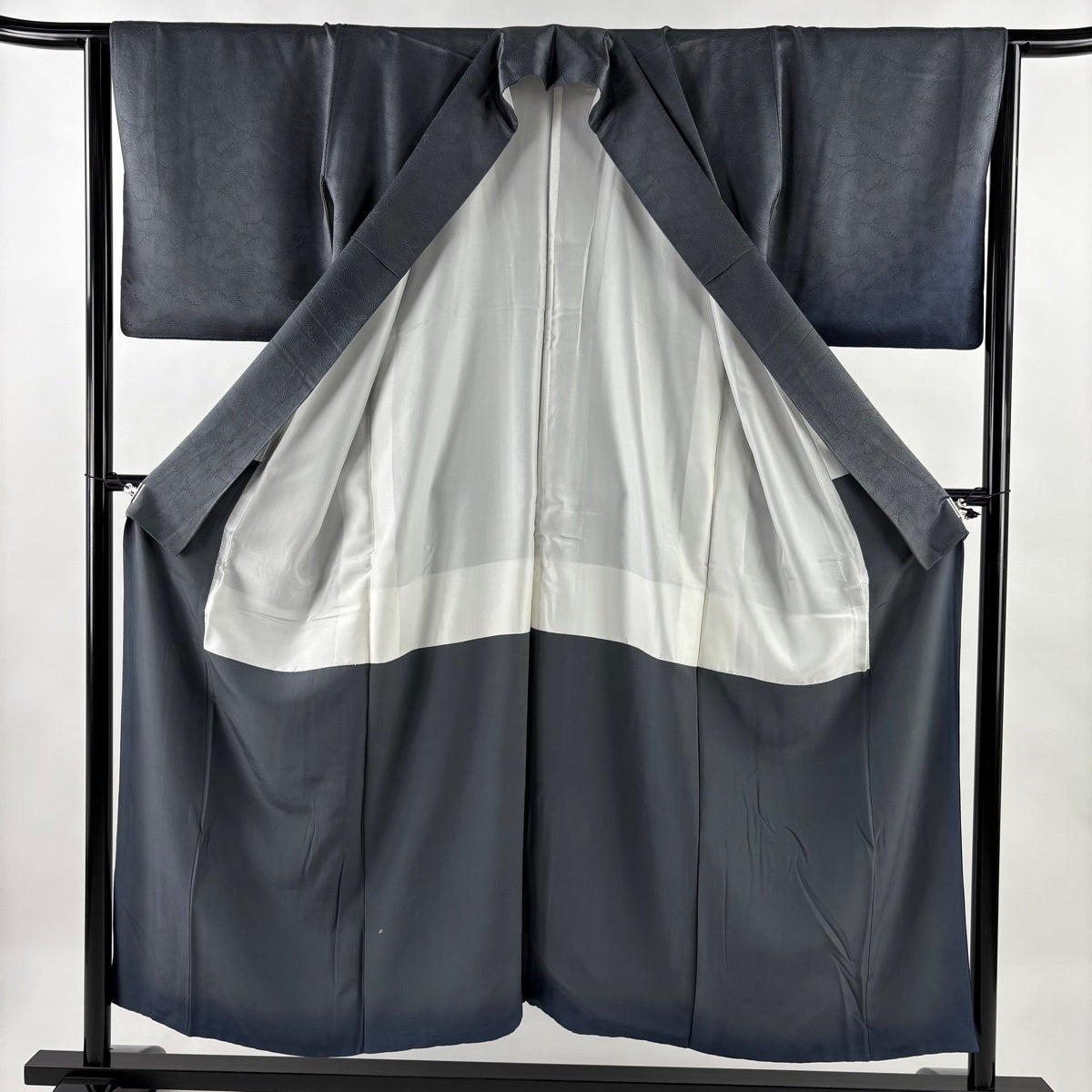 付下げ 身丈151cm 裄丈64cm M 袷 地紋 裾ぼかし 灰色 正絹 優品 一つ紋