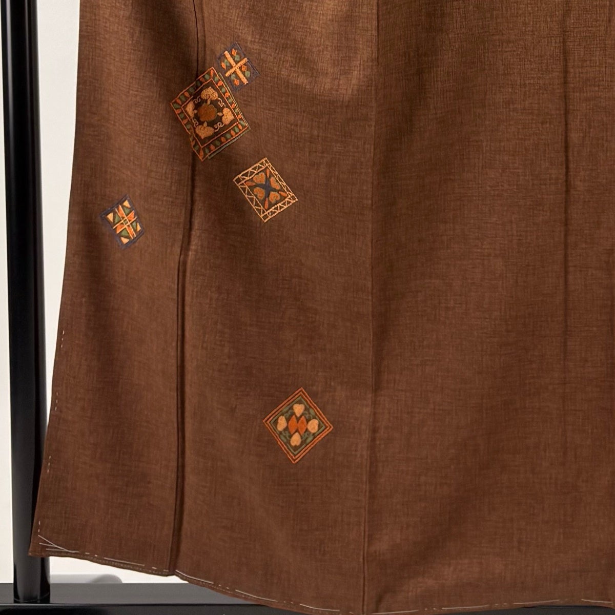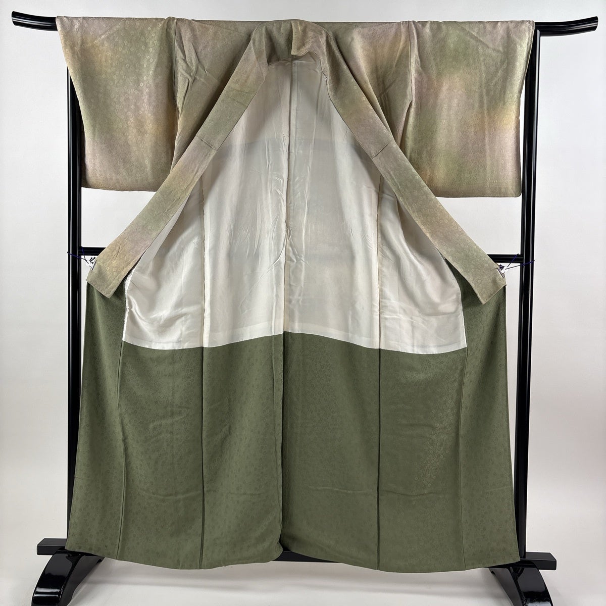 付下げ 身丈166.5cm 裄丈69.5cm L 袷 華文 七宝 刺繍 抹茶色 正絹 秀品