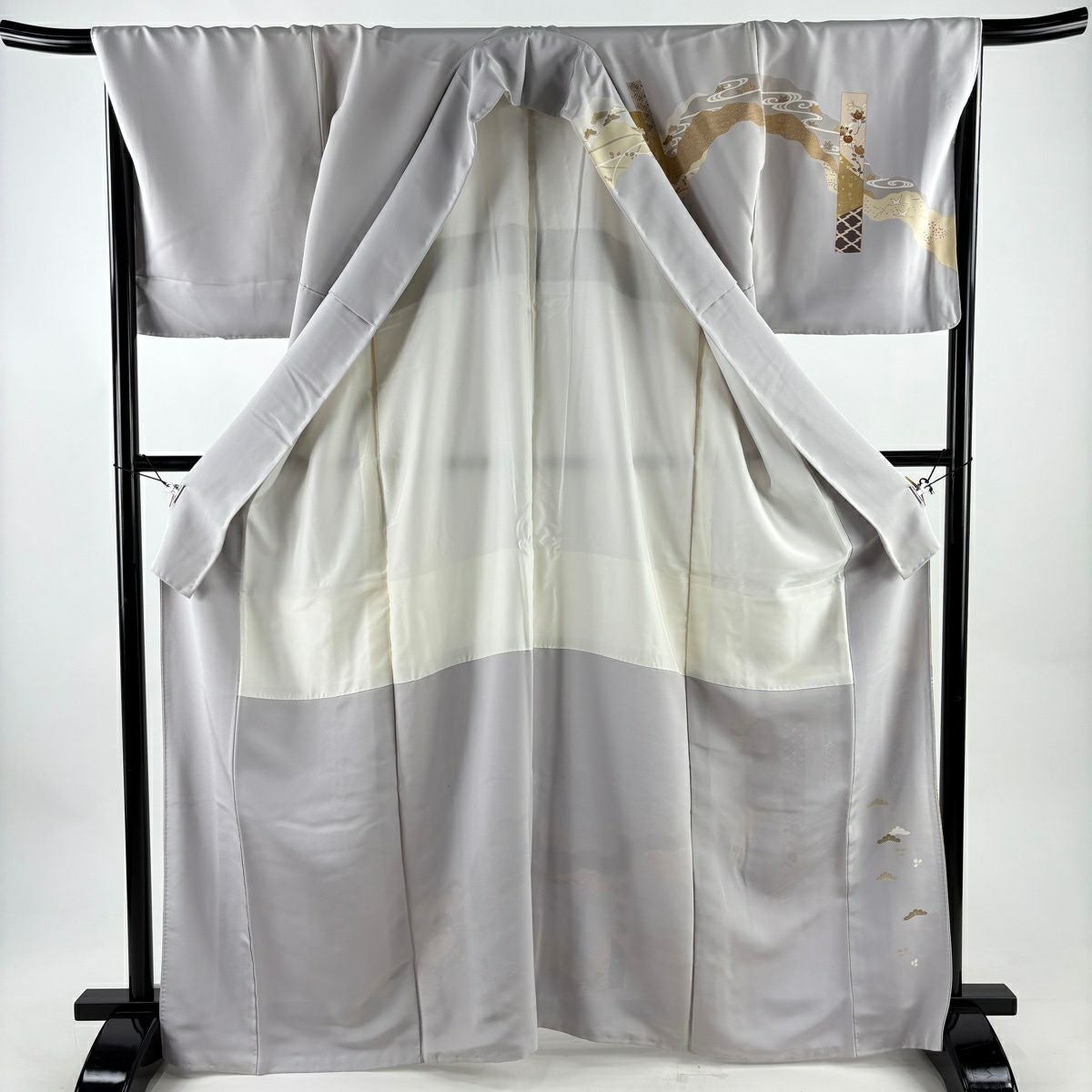 付下げ 身丈163.5cm 裄丈67cm M 袷 枝花 金彩 灰色 正絹 秀品