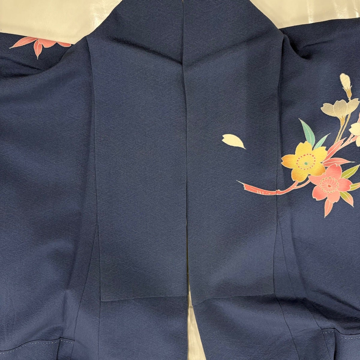 振袖 身丈164cm 裄丈63.5cm S 袷 蝶 桜 金彩 金糸 オレンジ 正絹 秀品