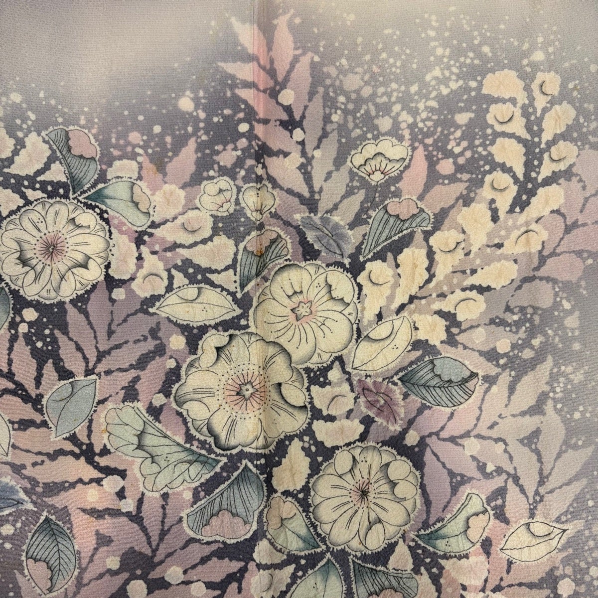 付下げ 身丈152.5cm 裄丈62cm S 袷 やまと 草花 ぼかし 灰紫 正絹 秀品