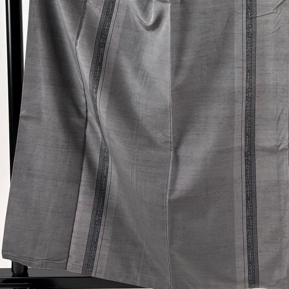 【美品】 紬 身丈159cm 裄丈63cm S 袷 やまと 縞 亀甲絣 灰色 正絹 名品