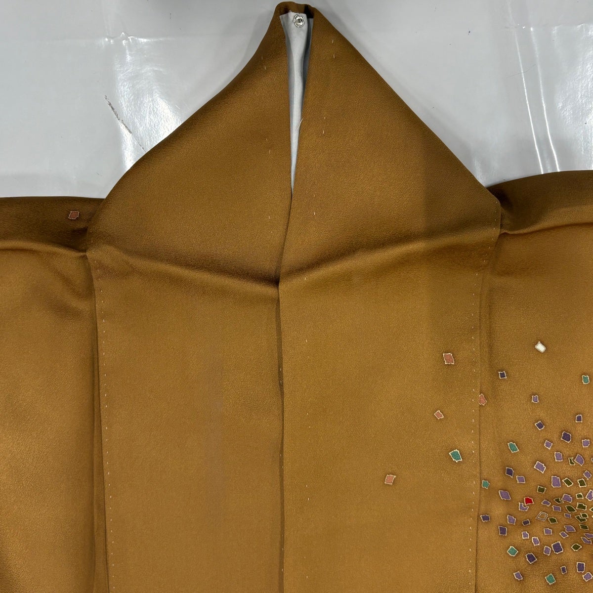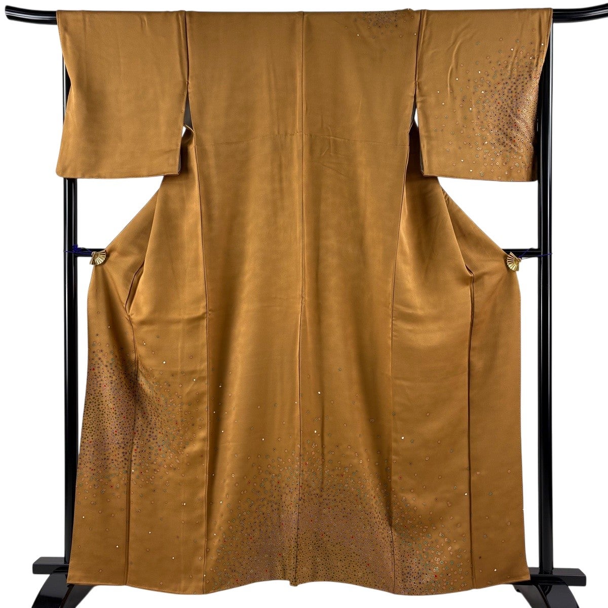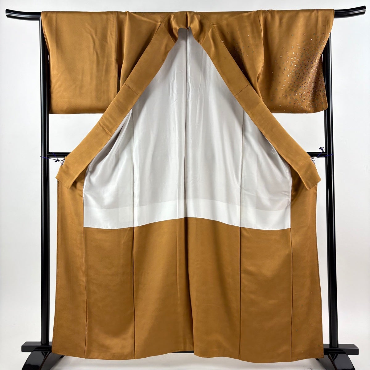 訪問着 身丈162.5cm 裄丈66.5cm M 袷 箔散らし柄 金彩 山吹茶色 正絹 秀品