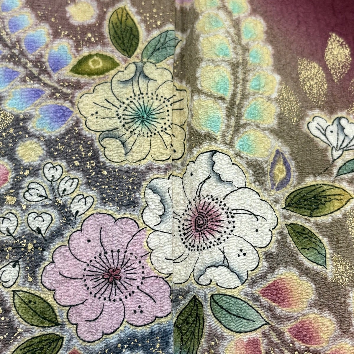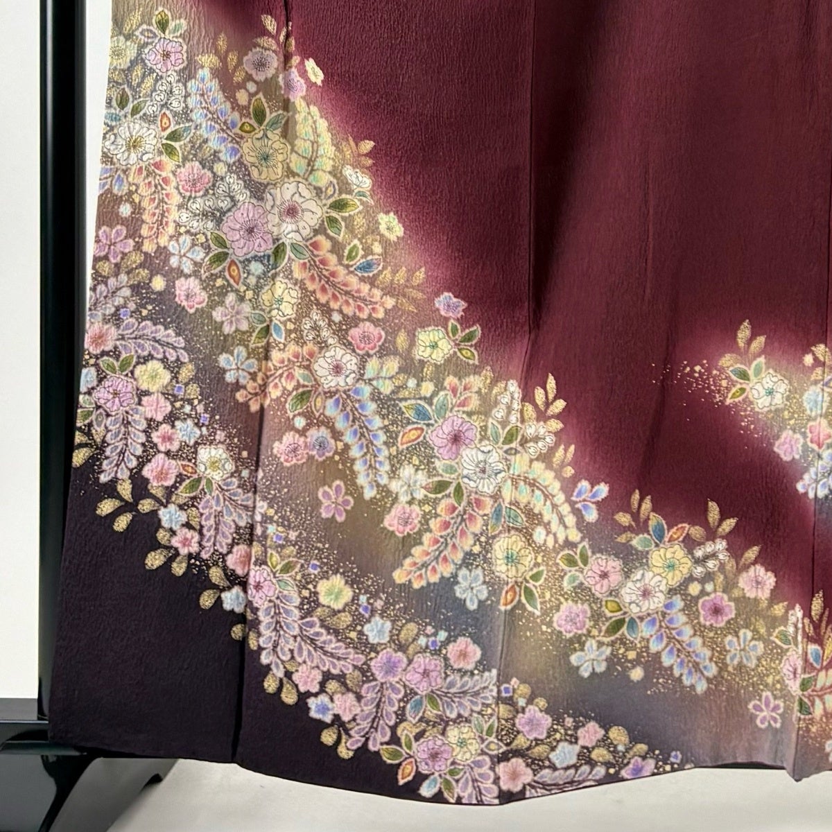付下げ 身丈161.5cm 裄丈64.5cm M 袷 辻が花 金彩 ぼかし 赤紫 正絹 秀品