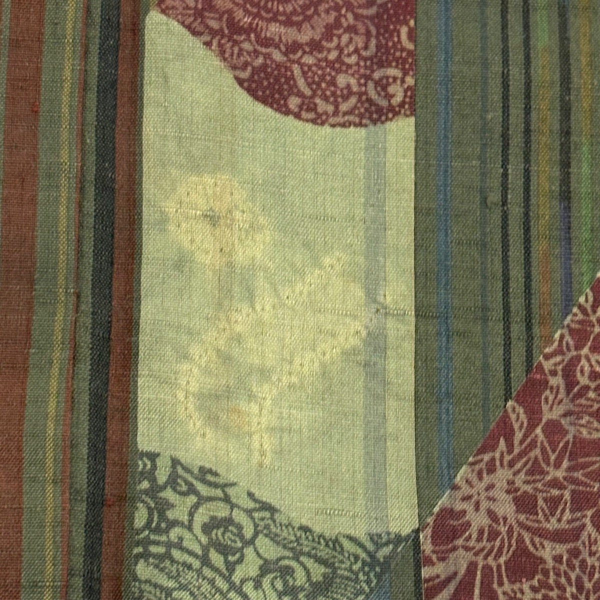 小紋 身丈169.5cm 裄丈67.5cm L 袷 紬地 縦縞 菊 絞り 茶緑色 正絹 秀品