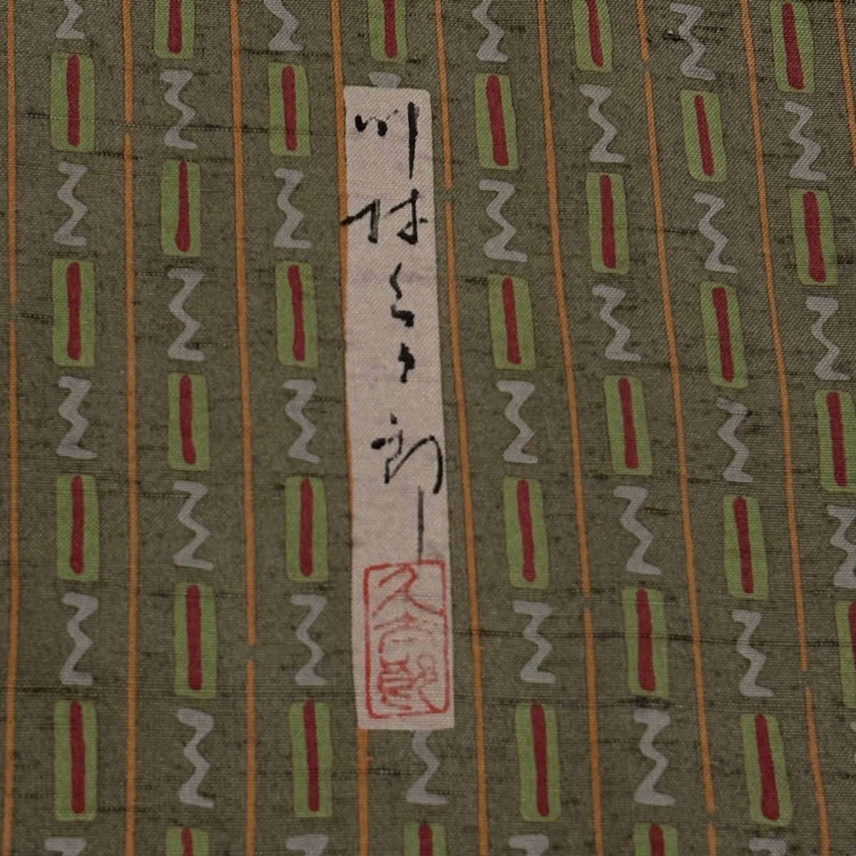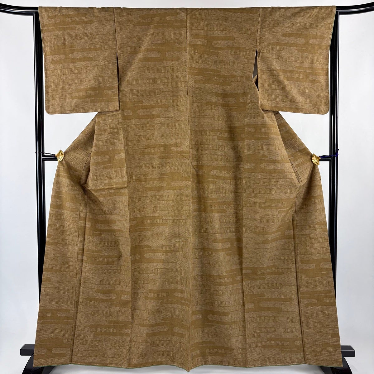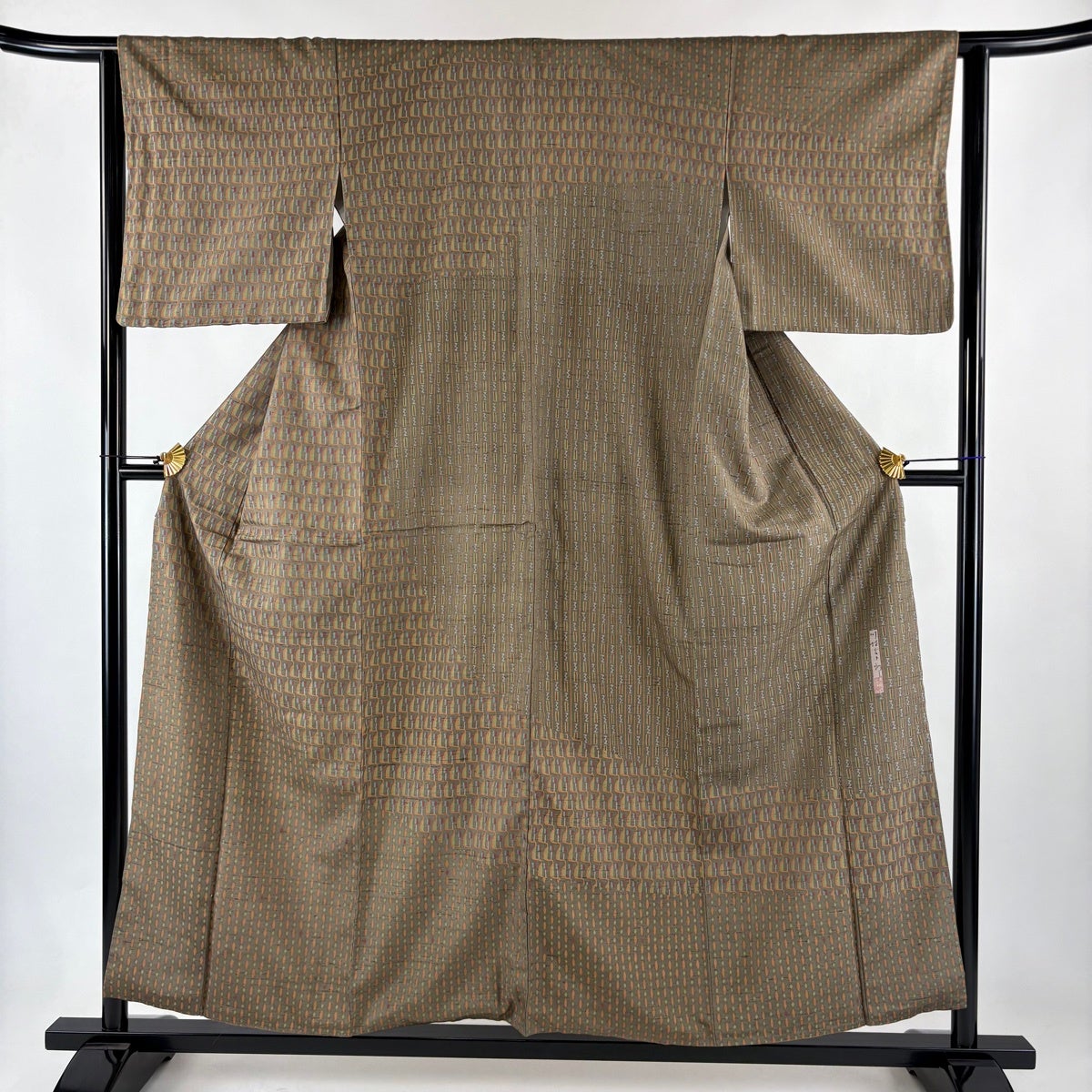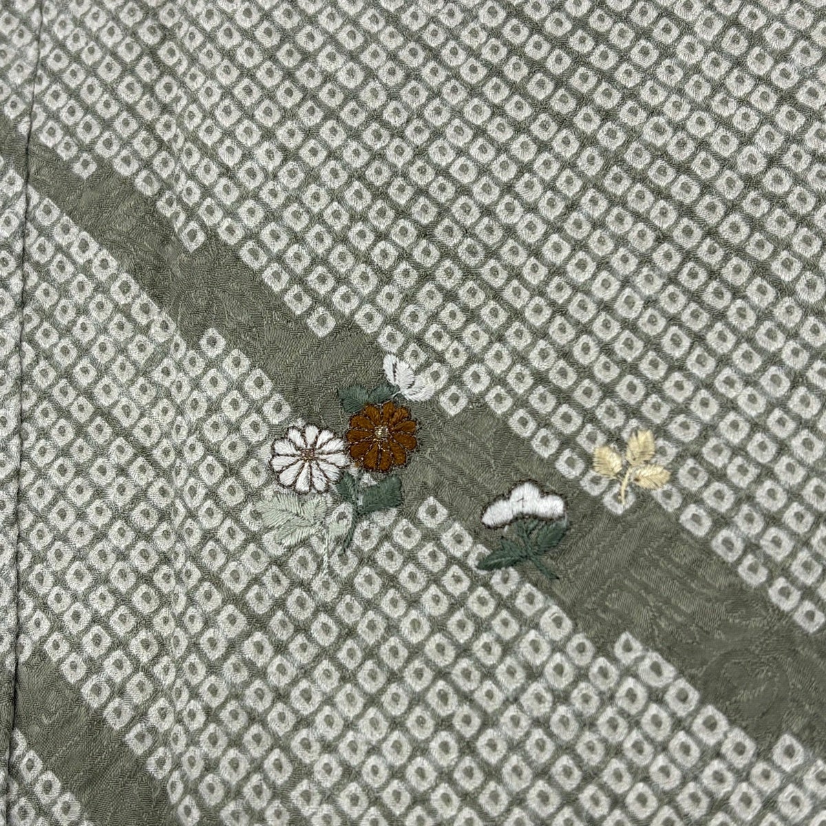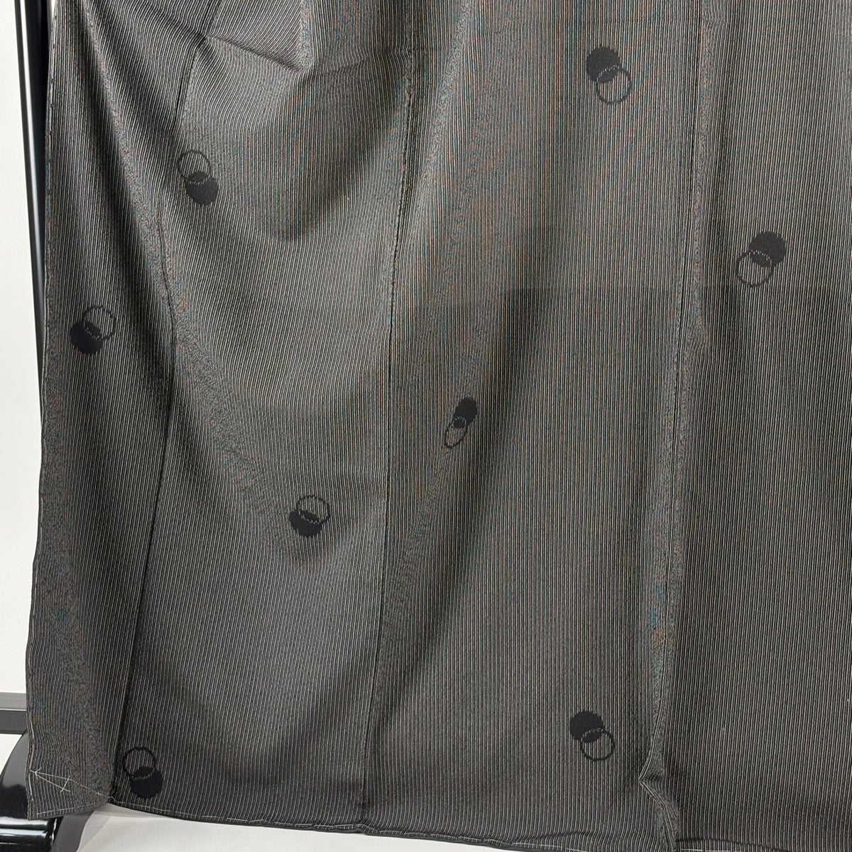 付下げ 身丈155cm 裄丈64cm M 袷 幾何学 ぼかし 茶緑色 正絹 秀品 一つ紋