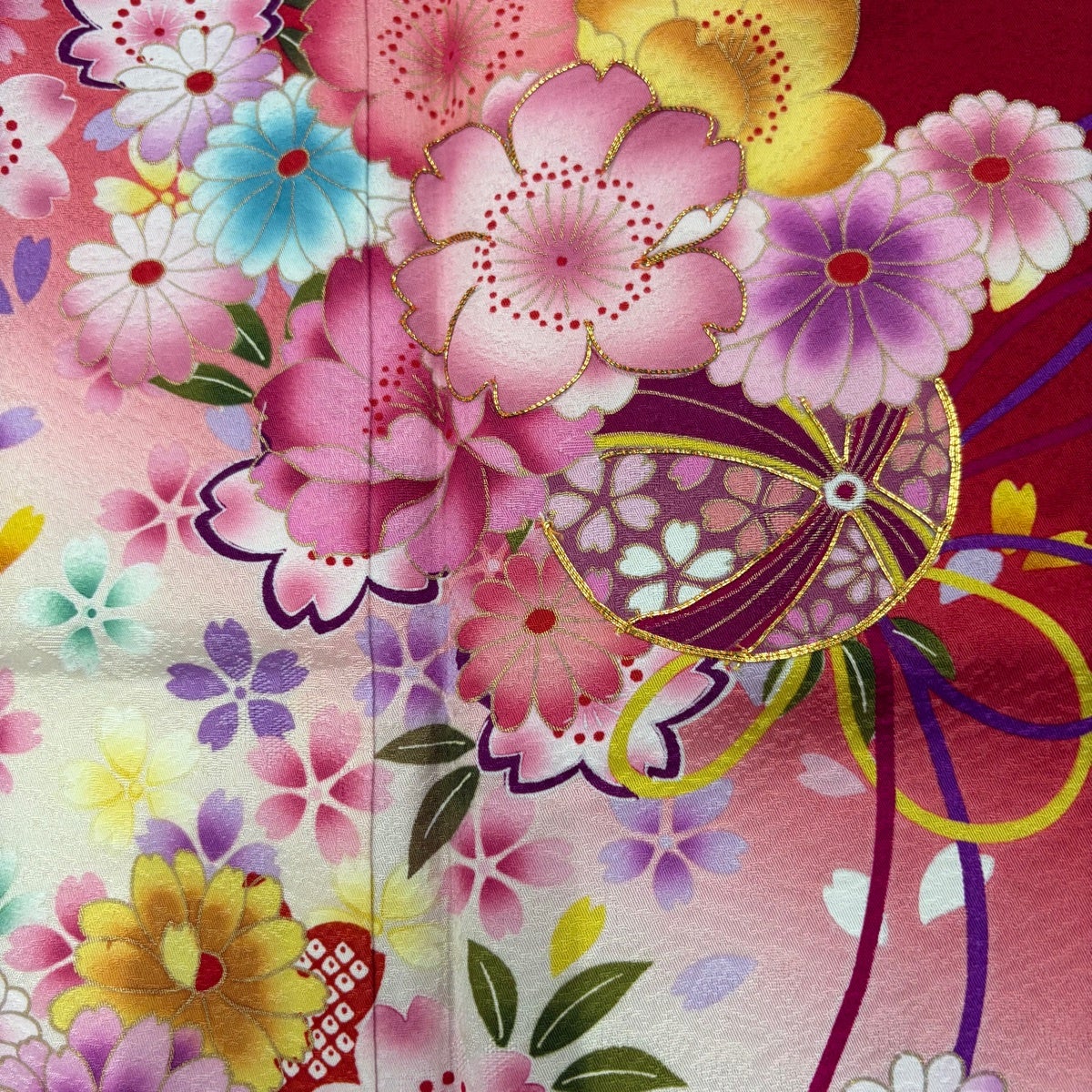 【美品】 振袖 身丈167cm 裄丈68cm L 袷 桜 手鞠 金彩 金糸 赤 正絹 名品